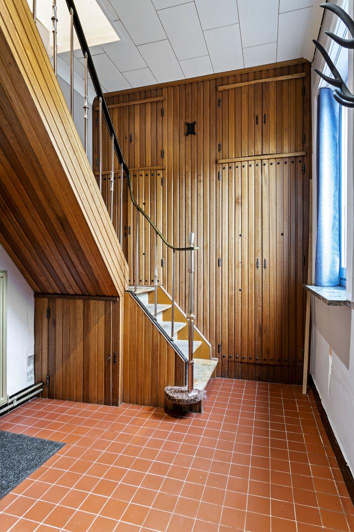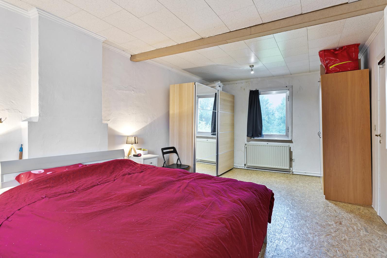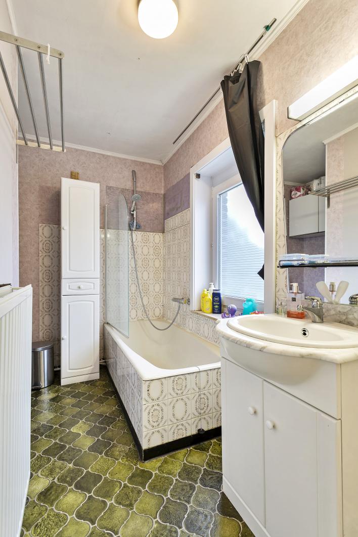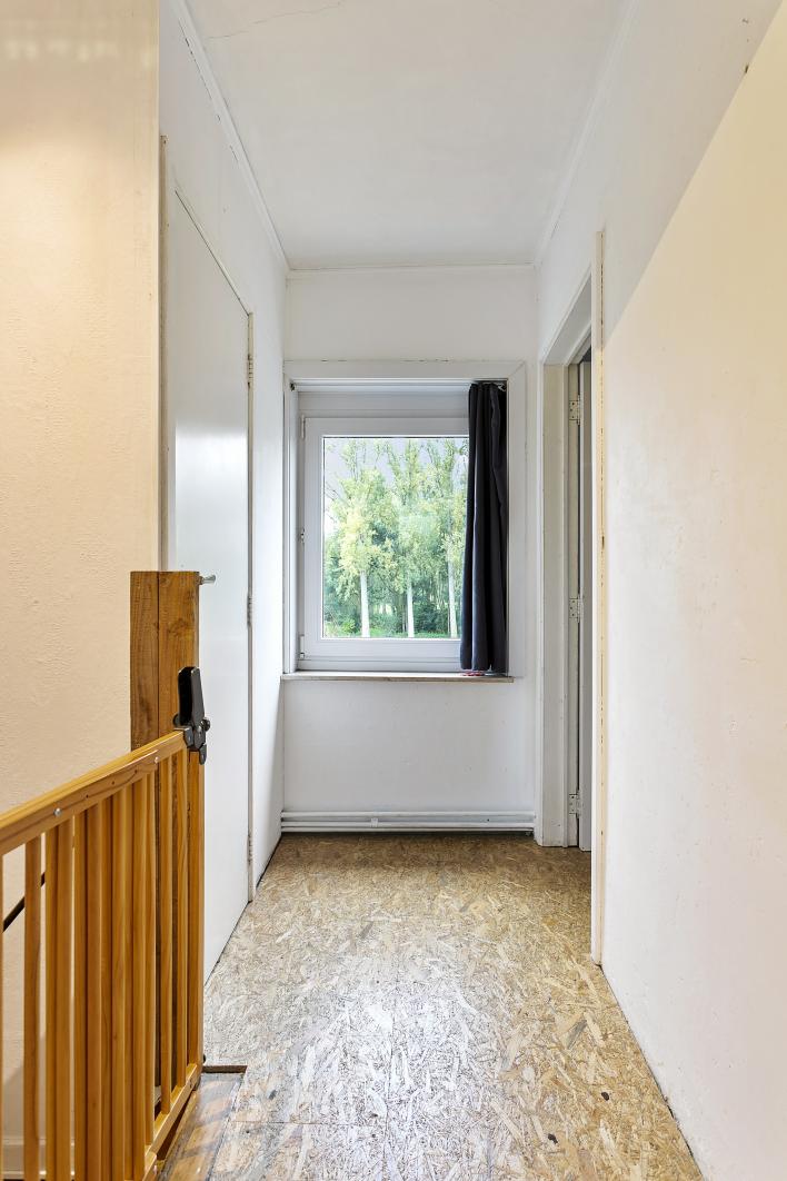 De eerste verdieping omvat nachthal, ingerichte badkamer en 2 slaapkamers waarvan 1 zeer ruime die kan ingedeeld worden in 2 slaapkamers,. De zolderruimte biedt nog de mogelijkheden en kan nog verder ingericht worden voor bijkomende slaapkamers. De woning wordt verwarmd via centrale verwarming op mazout.