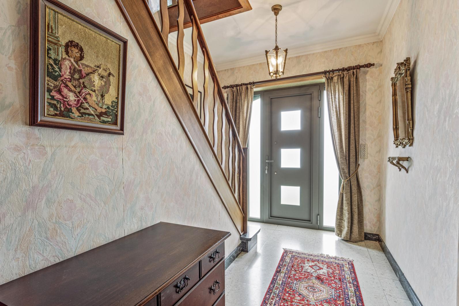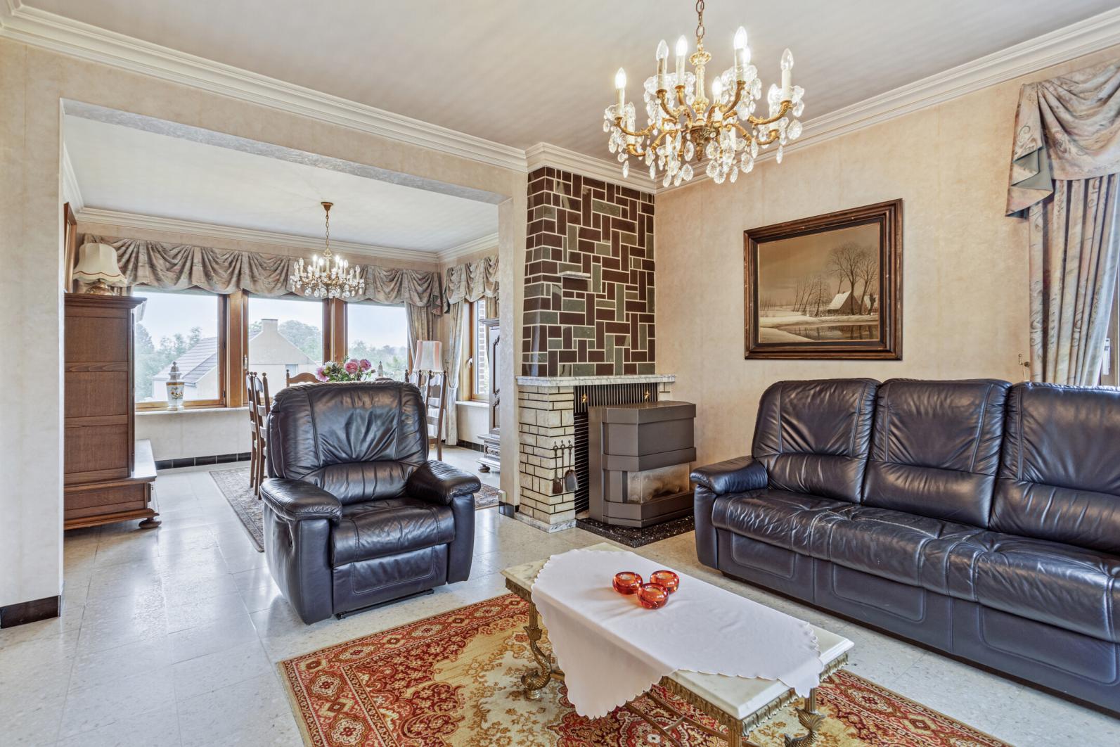 De woning is op de gelijkvloerse verdieping ingedeeld met een ruime lichtrijke inkomhal met trap naar de bovenverdieping. Vanuit de LICHTRIJKE RUME LIVING (L-vorm) kan men genieten van het mooi zicht op de grote voor-, zij en achtertuin met boomgaard, groenzicht verzekerd !.