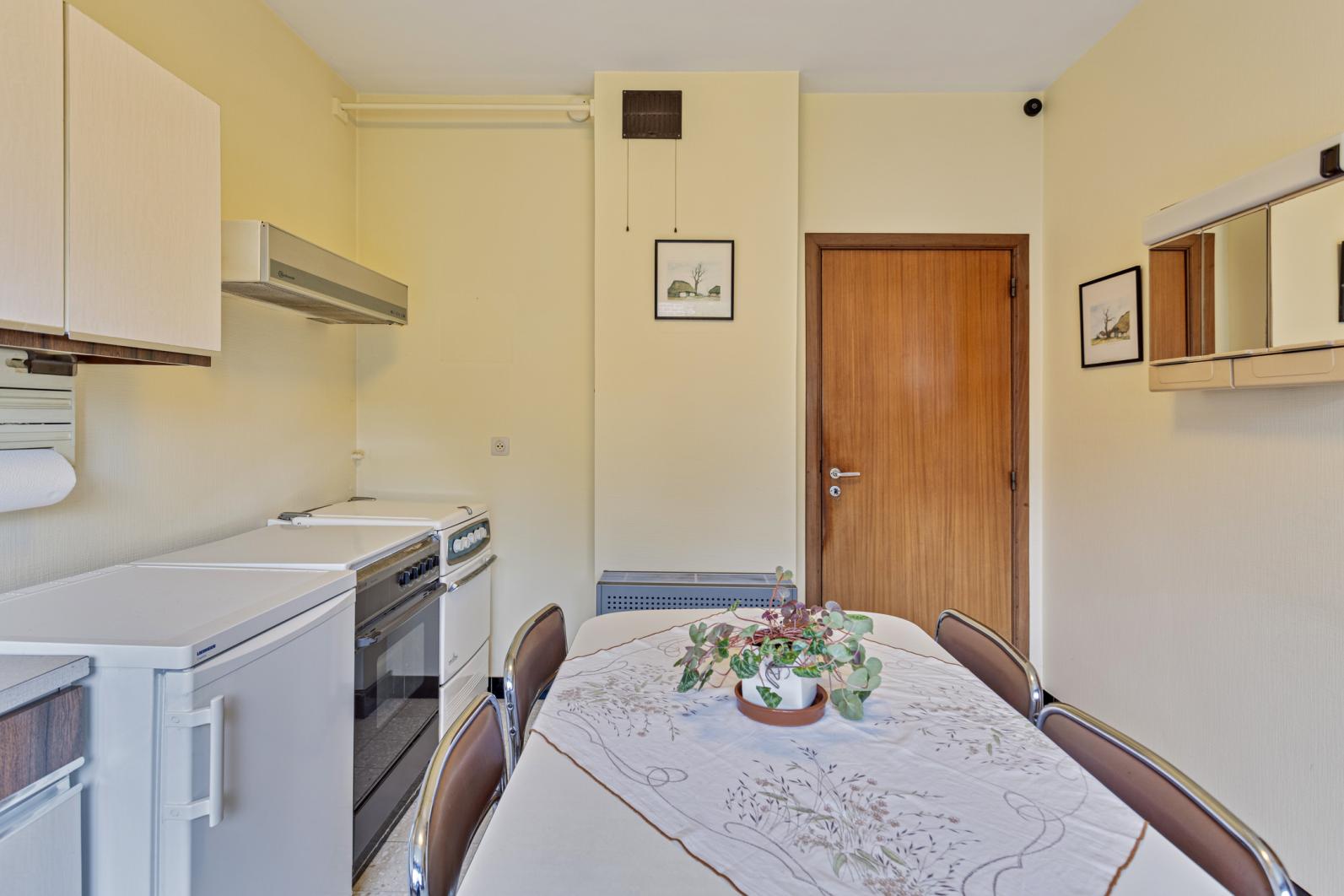 Aansluitend aan de living bevindt zich de ruime keuken van waaruit men zich tot het terras en de tuin begeeft. In de ruime verzorgde tuin is het aangenaam vertoeven en deze is tevens ideaal voor tuin- of dierenliefhebbers. De tuin beschikt over enkele handige buitenbergingen die dienstig kunnen zijn voor grasmaaier en fietsen.