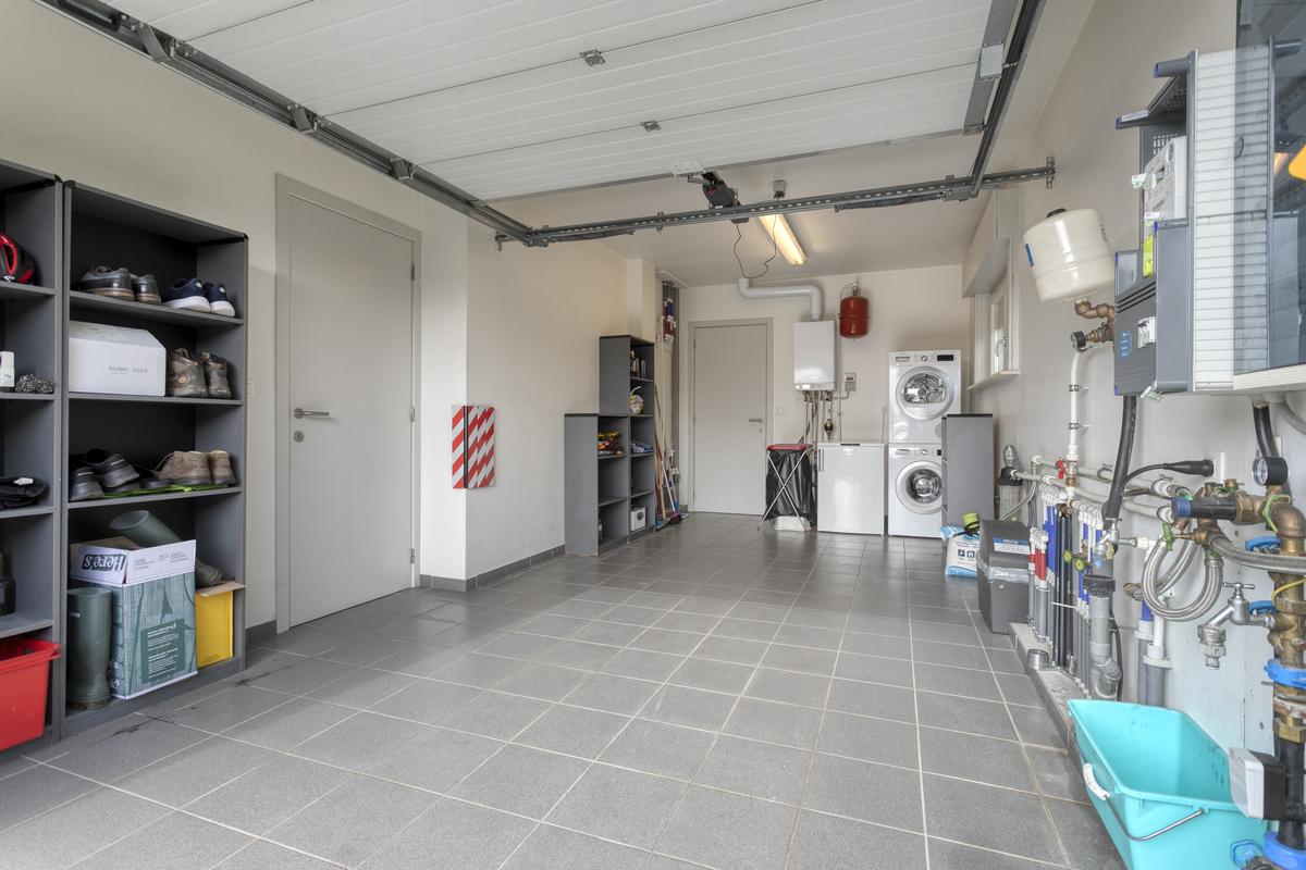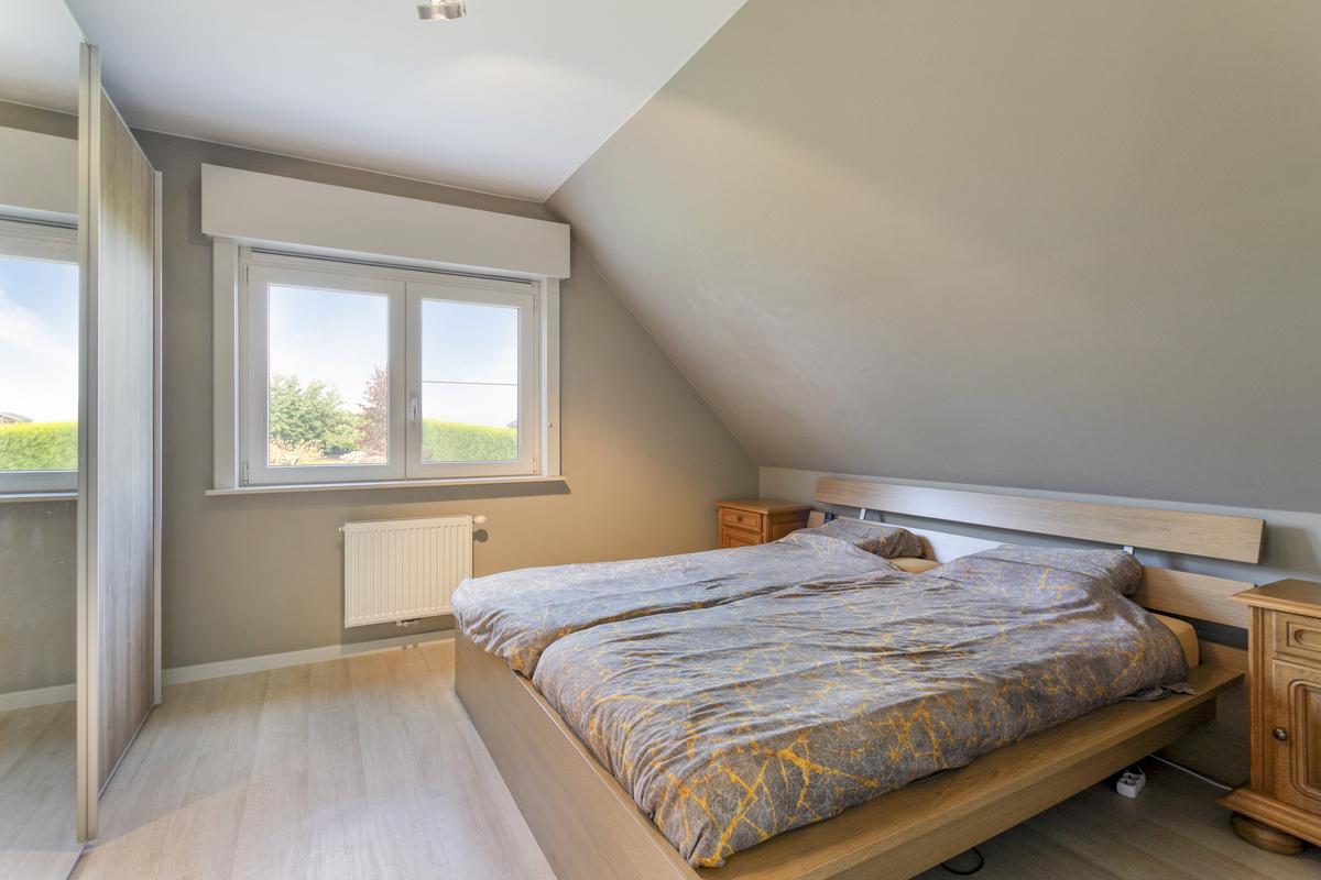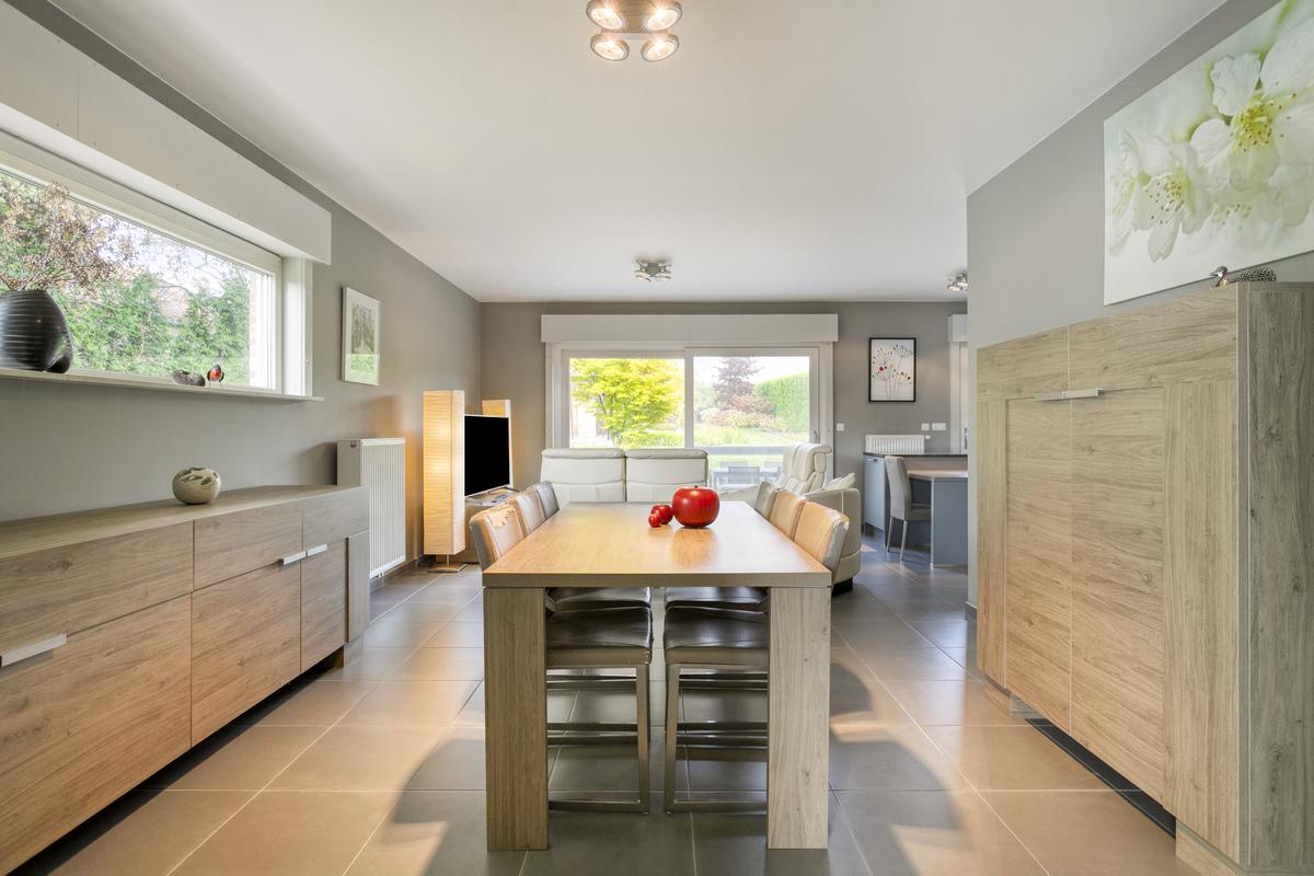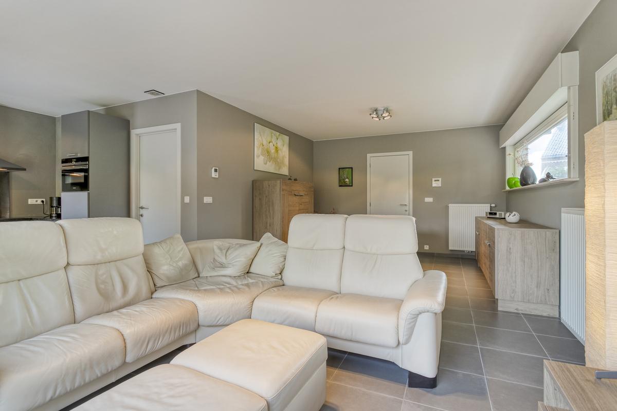 De woning is ingedeeld op gelijkvloers met lichtrijke inkomhal met trap, gastentoilet, lichtrijke leefruimte (salon, eetplaats) met open ingerichte keuken voorzien van alle nodige apparatuur en afgewerkt met granieten werkblad. Vanuit de leefruimte/salon en keuken en het mooi aangelegd ruim terras is het gezellig genieten van het uitzicht op de mooi aangelegde ruime siertuin, de tuin is volledig omheind, en vooraan voorzien van een automatische hek. Verder is er nog een ruime garage met bergruimte. De bovenverdieping omvat 2 slaapkamers, bergruimte en een ingerichte badkamer. De woning wordt verwarmd via centrale verwarming op aardgas.
