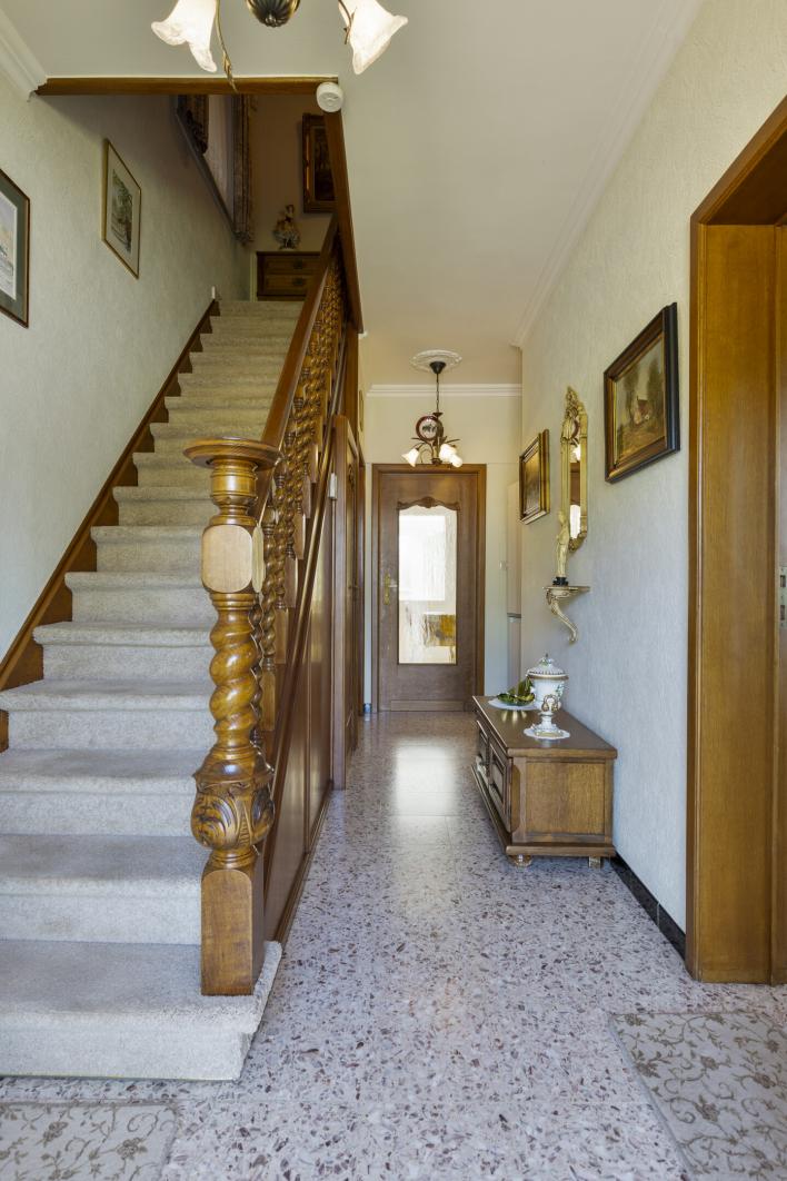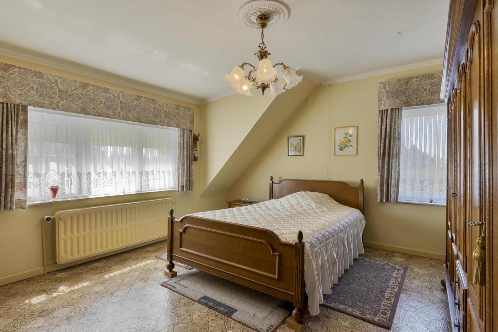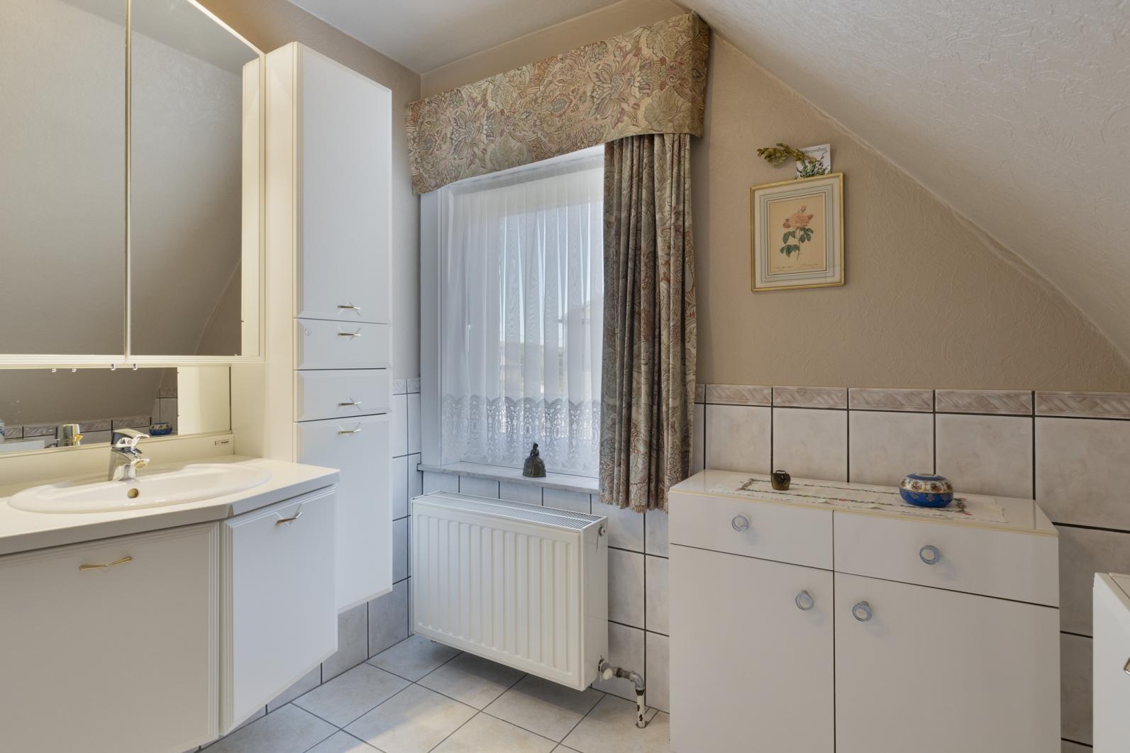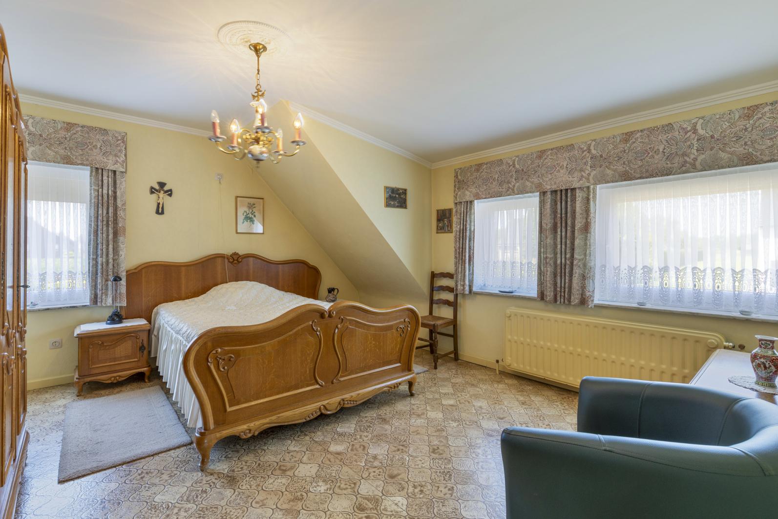 De woning is ingedeeld met inkom/gang met trap, ruime LICHTRIJKE leefruimte met salon en eetplaats, ingerichte keuken. Aansluitend aan de living en keuken bevindt zich een ruime veranda met mooi zicht op de zuiders gerichte goed onderhouden tuin. De veranda is eveneens voorzien van zonneluifel. Verder is er nog een middelmatige kelder, een garage en bergruimte. De weide achter de tuin is ideaal voor dierenliefhebbers. De bovenverdieping omvat nachthal, 3 slpks en een ingerichte badkamer. Alle ramen zijn voorzien van rolluiken. Centrale verwarming op stookolie.
