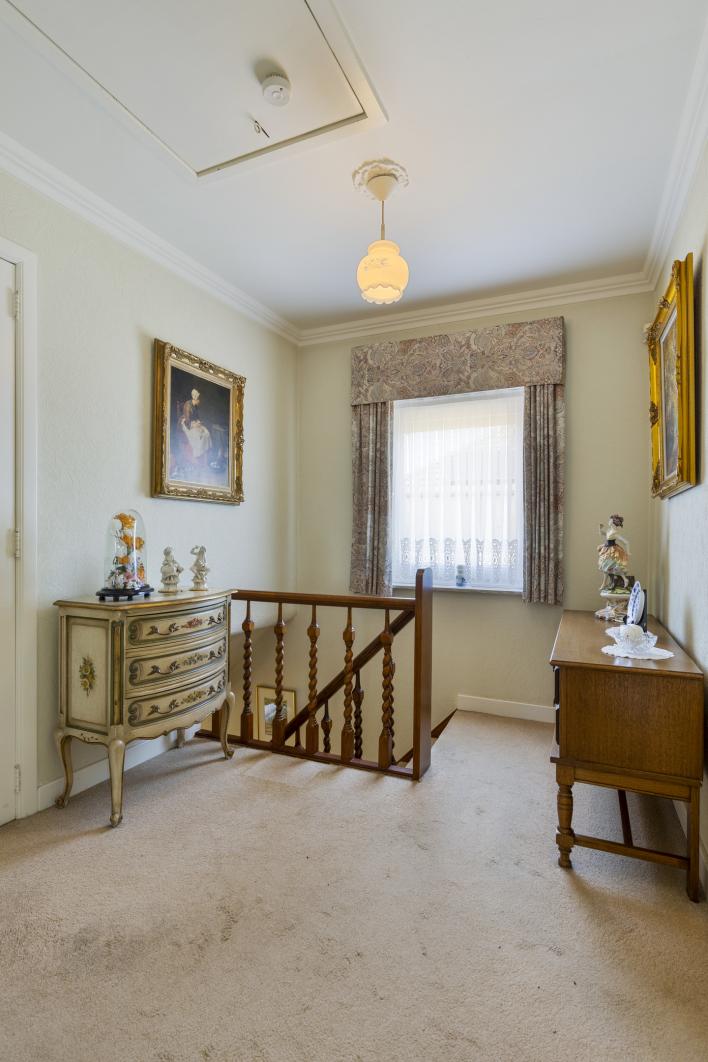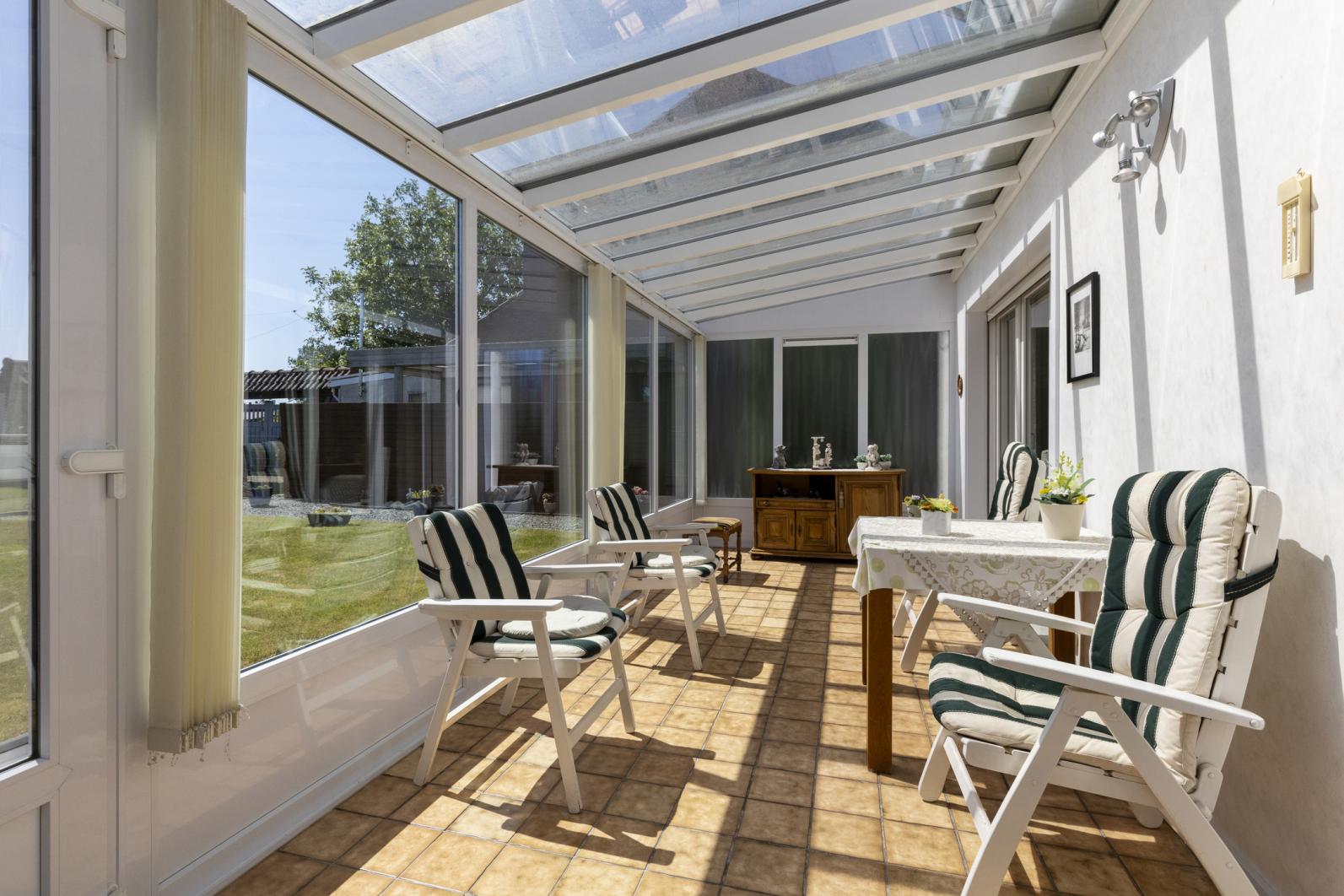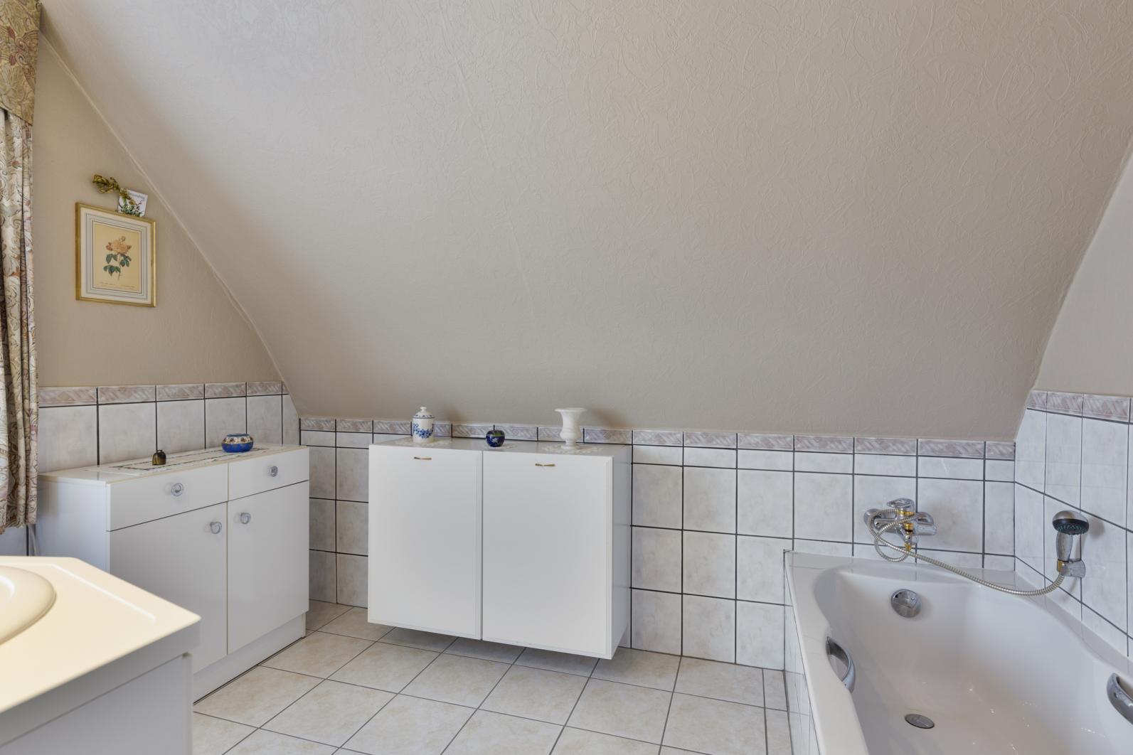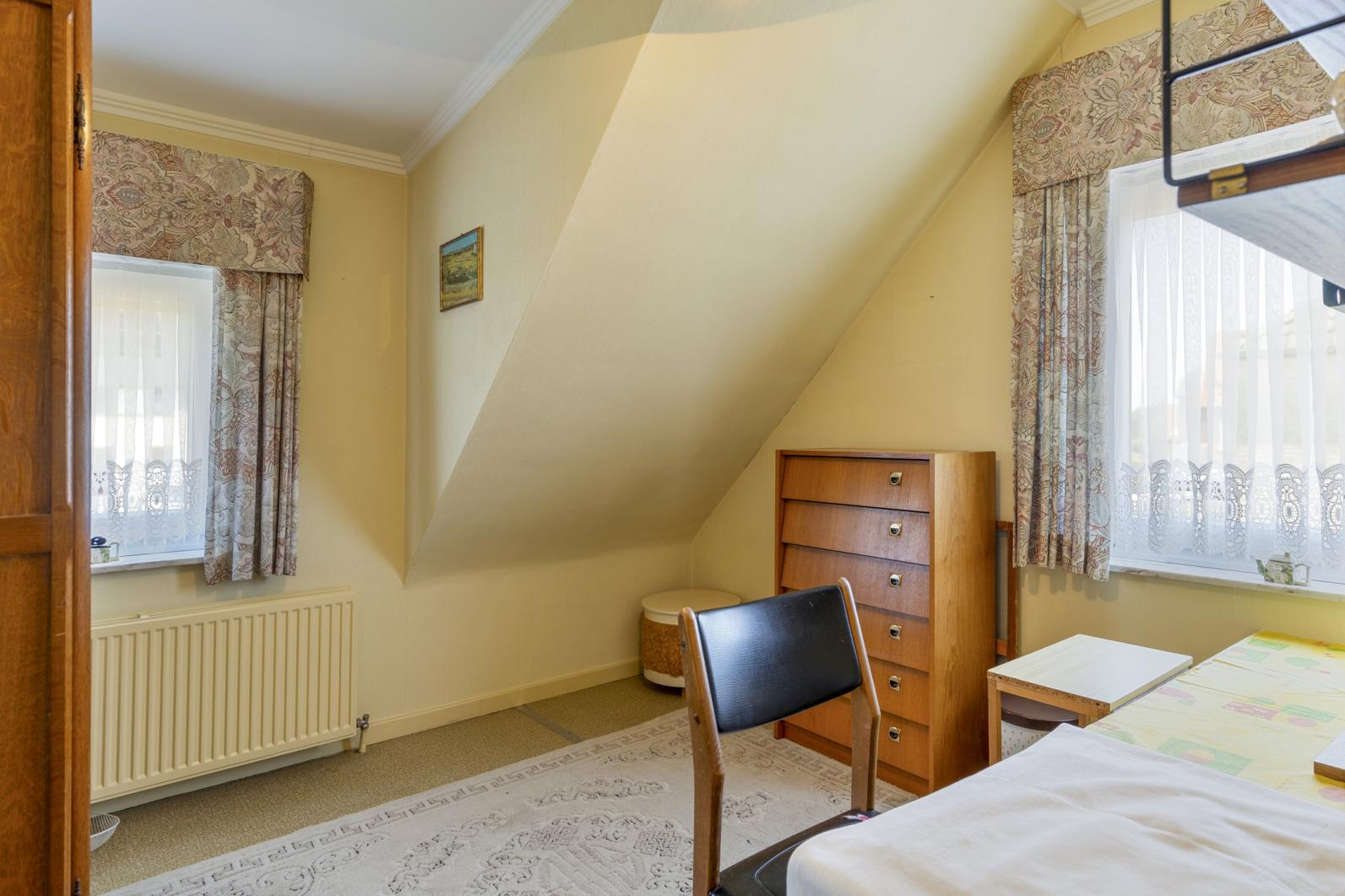 De woning is ingedeeld met inkom/gang met trap, ruime LICHTRIJKE leefruimte met salon en eetplaats, ingerichte keuken. Aansluitend aan de living en keuken bevindt zich een ruime veranda met mooi zicht op de zuiders gerichte goed onderhouden tuin. De veranda is eveneens voorzien van zonneluifel. Verder is er nog een middelmatige kelder, een garage en bergruimte. De weide achter de tuin is ideaal voor dierenliefhebbers. De bovenverdieping omvat nachthal, 3 slpks en een ingerichte badkamer. Alle ramen zijn voorzien van rolluiken. Centrale verwarming op stookolie.