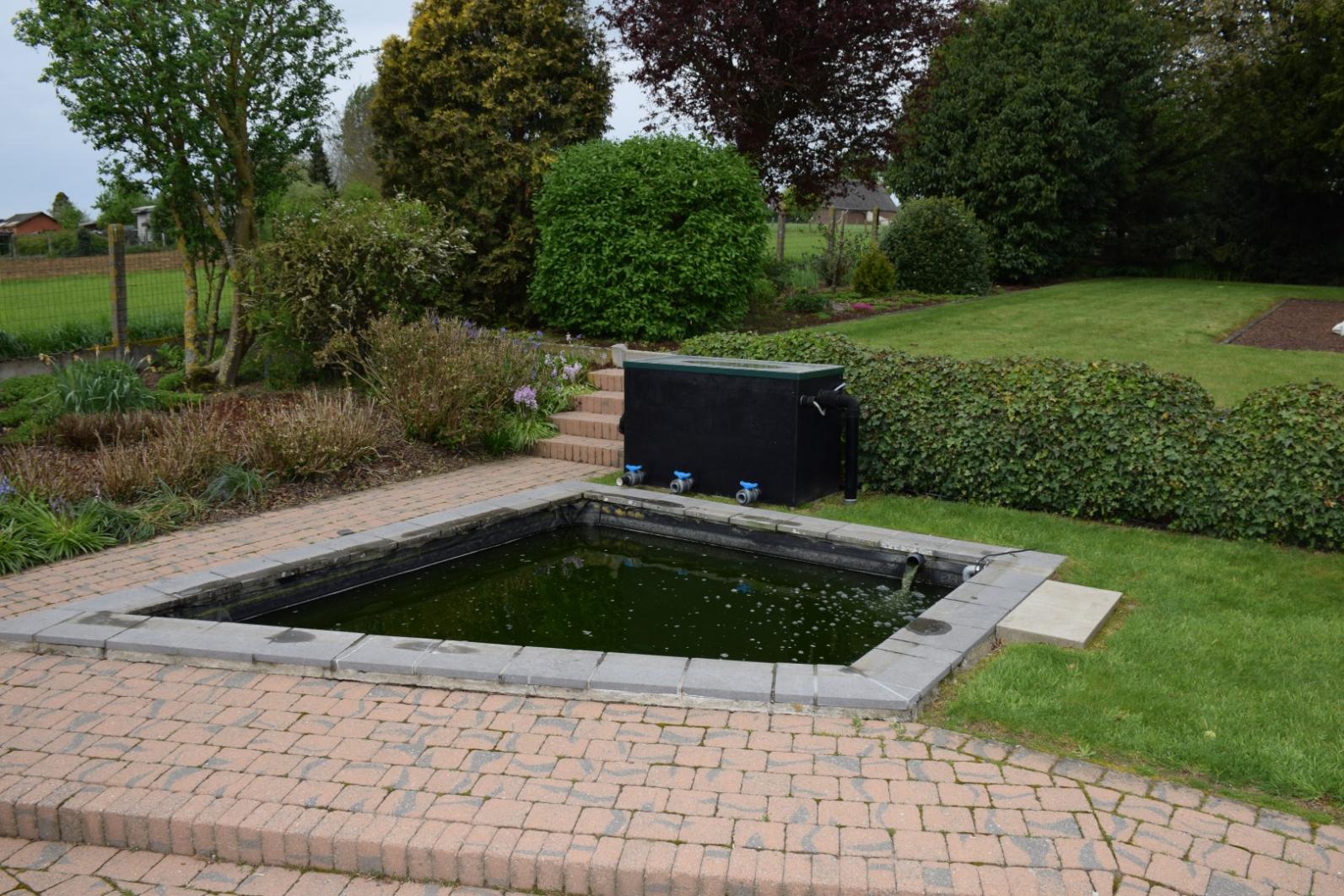 deze verzorgde charmante VRIJSTAANDE BUNGALOW met twee garages ( 40 m²), grote voortuin met ruime oprit, grote verzorgde siertuin met vijvertje, perceelsbreedte 23,70m