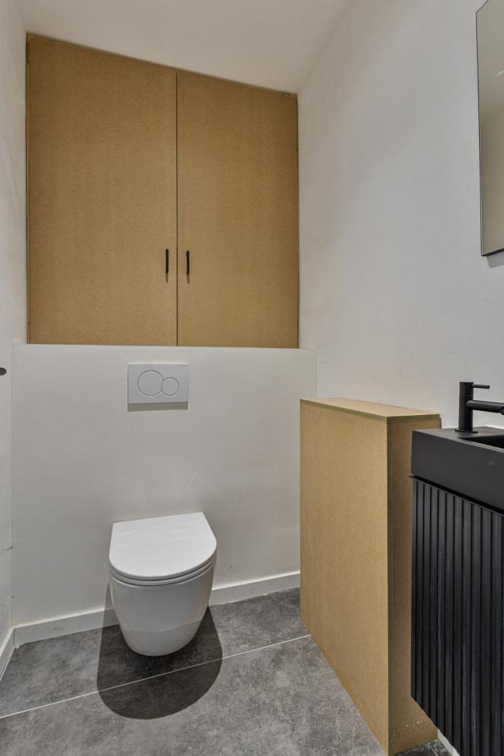 De bovenverdieping omvat nachthal - ruime ingerichte badkamer (toilet, badmeubel (dubbele wastafel) inloopdouche, verder zijn er 3 slaapkamers.