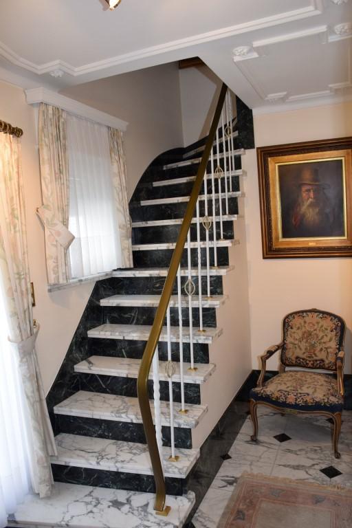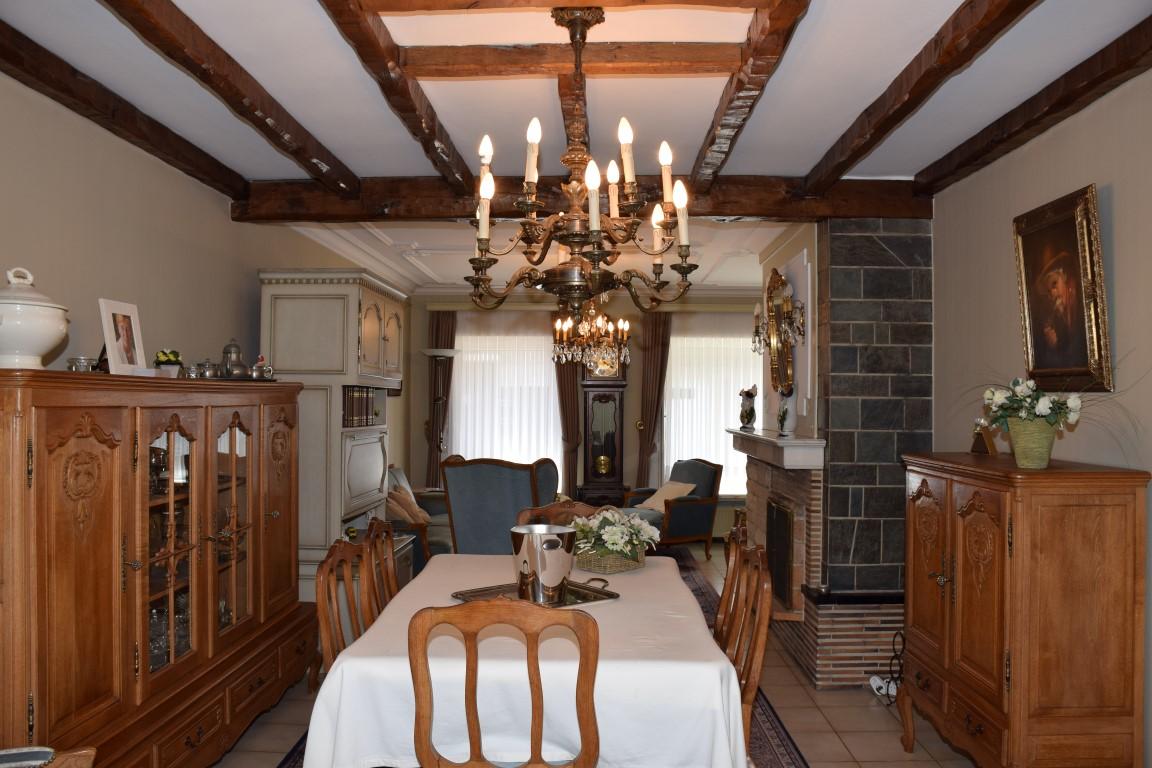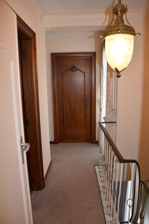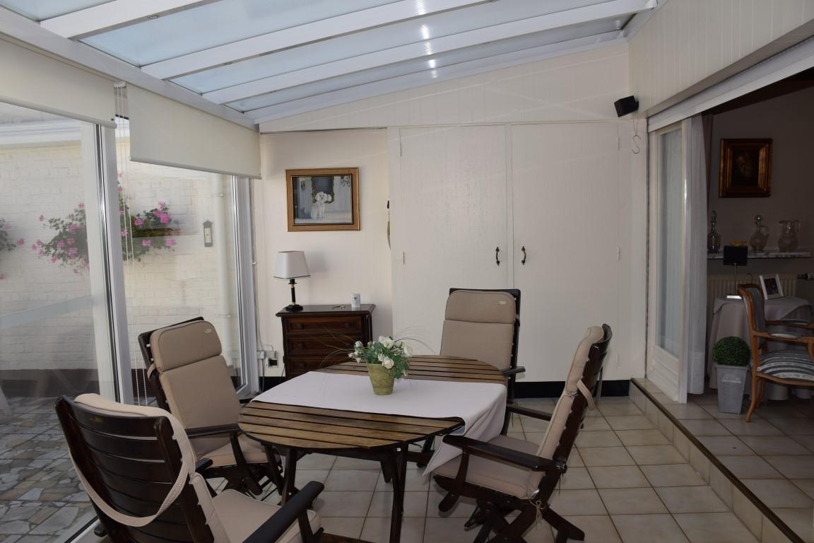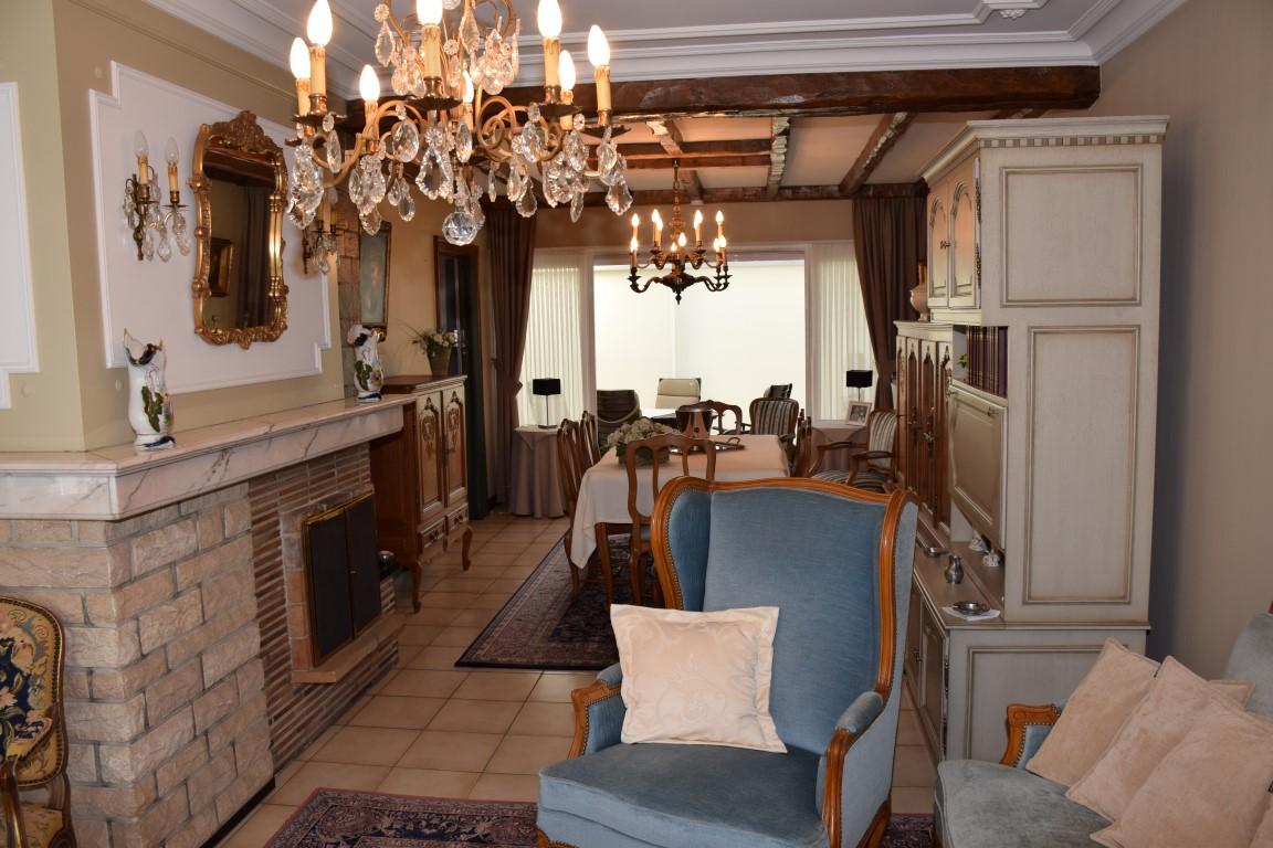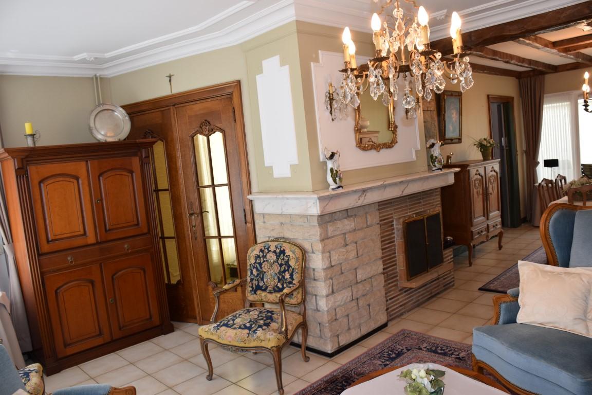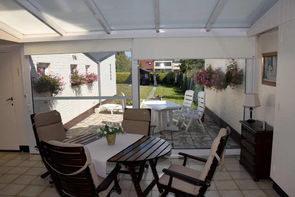 De woning omvat op het gelijkvloers een inkomhal met trap, een zeer lichtrijke living, een ingerichte massief eiken keuken, een zeer ruime veranda met zicht op het ruime terras en de mooie tuin.