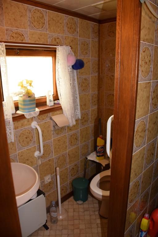 De woning ingedeeld op gelijkvloers met living bestaande uit salon/eetkamer, keuken, berging , ingerichte badkamer, aanpalend aan het woonhuis bevindt zich nog een ruime berging die dienstig kan zijn als garage of kleine werkruimte.