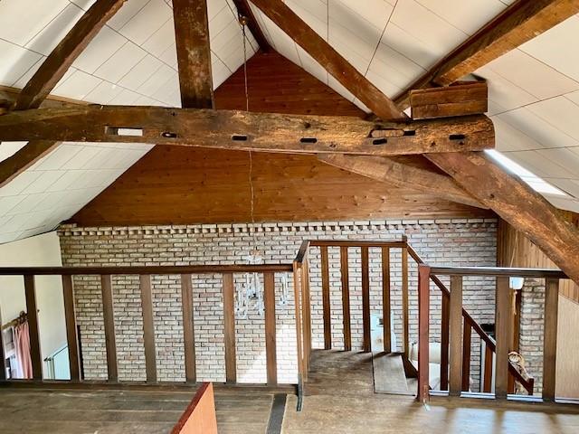 Indeling : vooraan zijdelings een slaapkamer (voorheen bureel) met daarachter de badkamer. Op het hoger niveau aan de linkerkant bevindt zich de leefruimte volledig open tot in de nok met zithoek met zicht op de ruime tuin en keuken. Via de open trap in de living begeeft men zich naar de ruime slaapkamer (20 m²). Verder is er nog een terras (60m²) waar het gezellig genieten is de rustgevende tuin.
