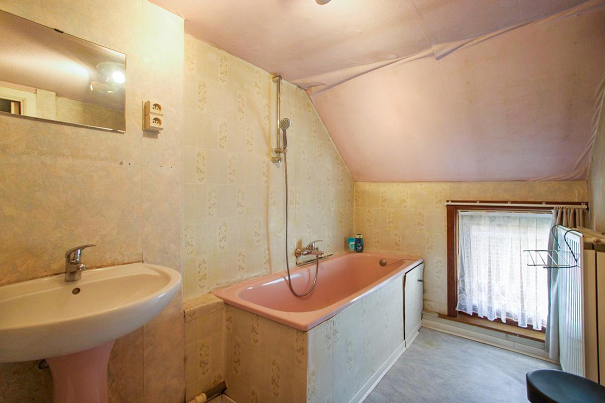 De bovenverdieping omvat nachthal - 3 slaapkamers en een ingerichte badkamer. De woning wordt verwarmd via centrale verwarming op mazout.