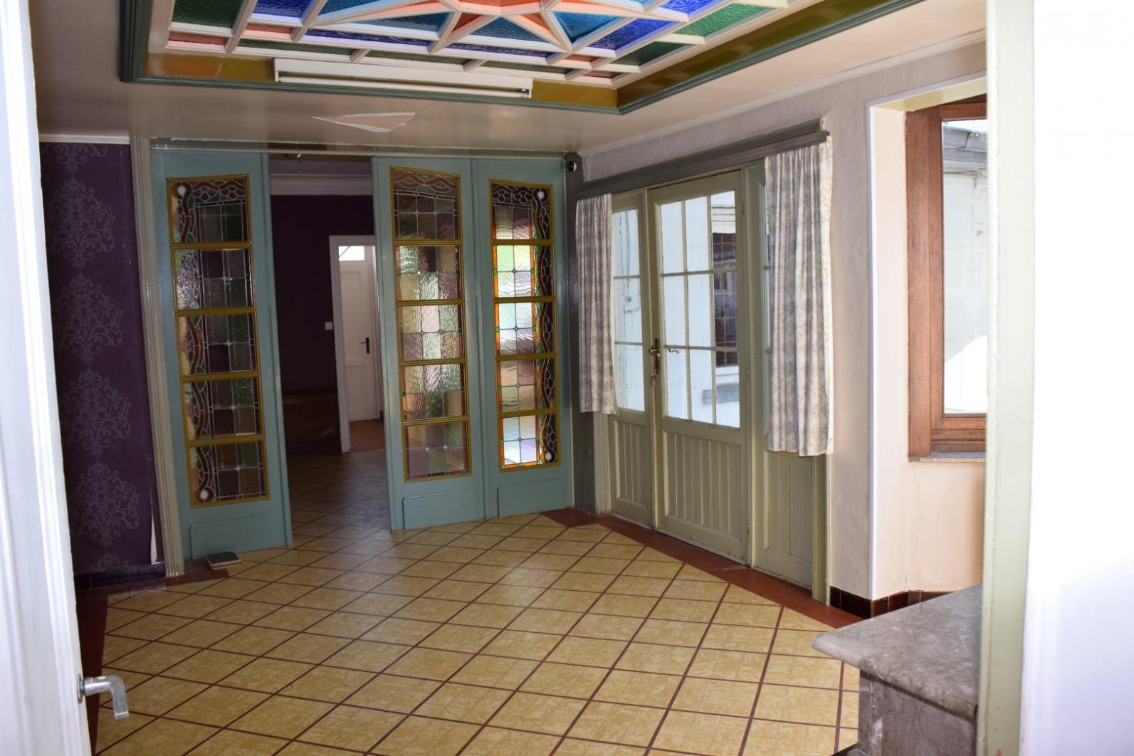 de woning omvat op de gelijkvloerse verdieping