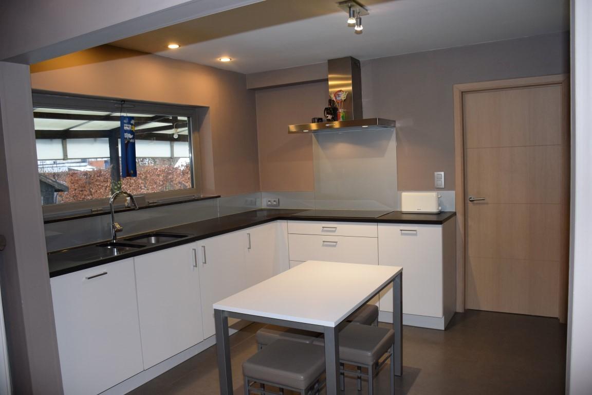 indeling gelijkvloers : inkom met toilet en trap , living met open NIEUWE INGERICHTE KEUKEN (ceramische kookplaat, vaatwas, micro-combi oven)