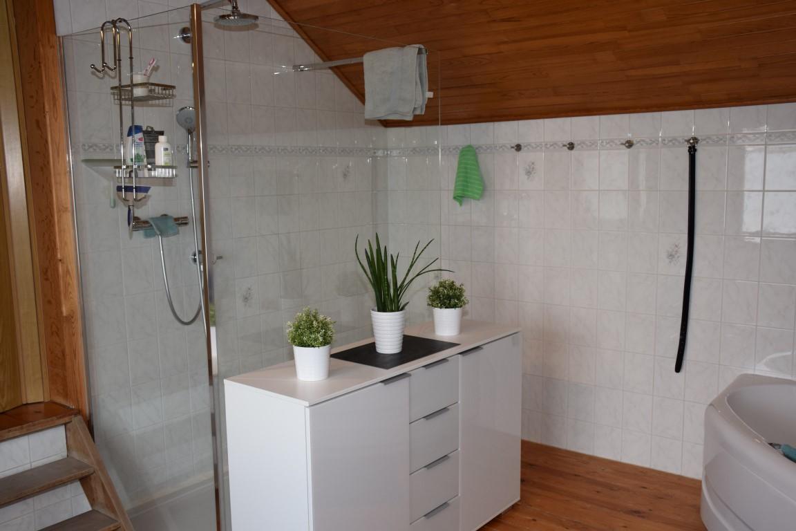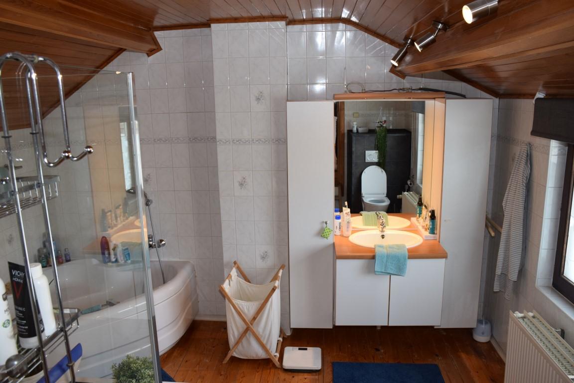 De bovenverdieping omvat nachthal, nieuw ingerichte badkamer ( badmeubel, hoek/massagebad/ ruime inloopdouche) en 3 slaapkamers. Centrale verwarming op AARDGAS, airco