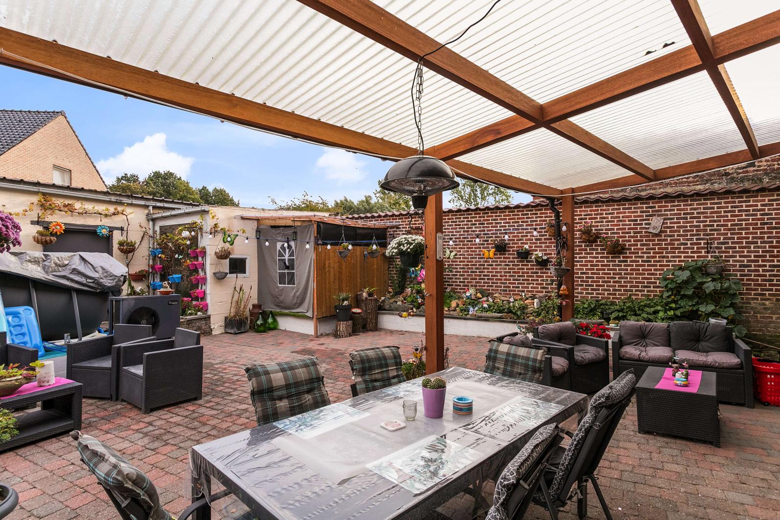 Verder is er een zuiders gerichte aangename BINNENKOER ( 134 m²° en berging. Ramen PVC DUBBELE BEGLAZING met overal ROLLUIKEN) -AARDGASVERWARMING