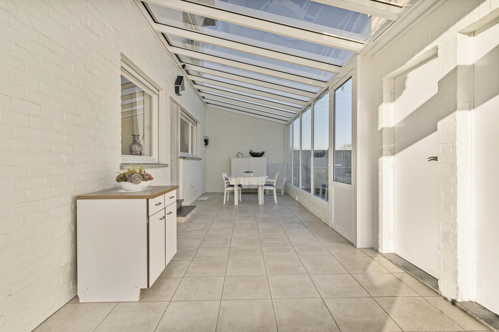 De woning is ingedeeld op gelijkvloers met ruime inkomhal met trap -lichtrijke leefruimte ( eettkamer en salon) - ruime ingerichte keuken - berging - overdekte veranda. De bovenverdieping omvat nachthal - toilet en 3 slaapkamers. Verder is er nog een afzonderlijke ruime garage en buitenberging.