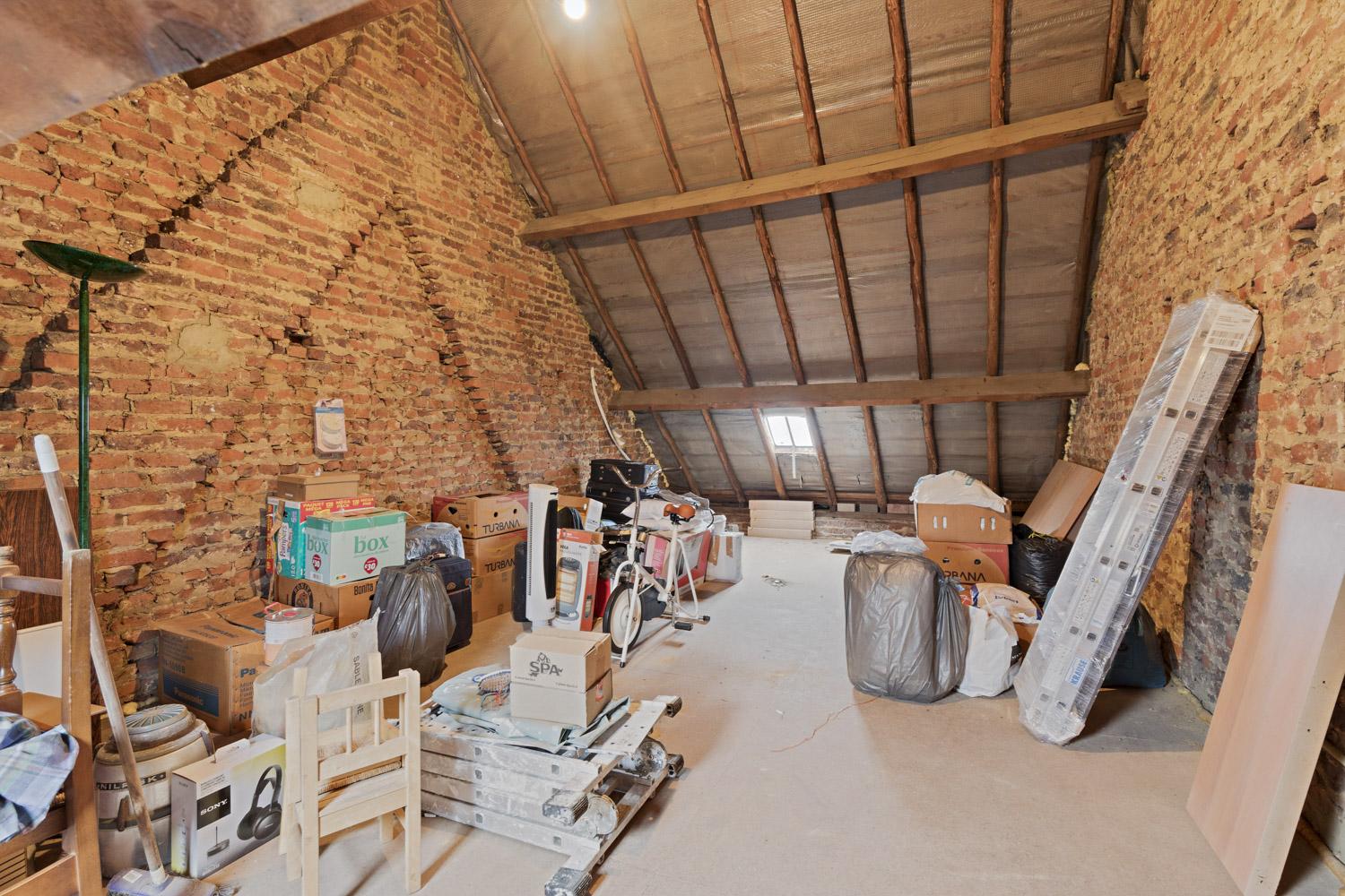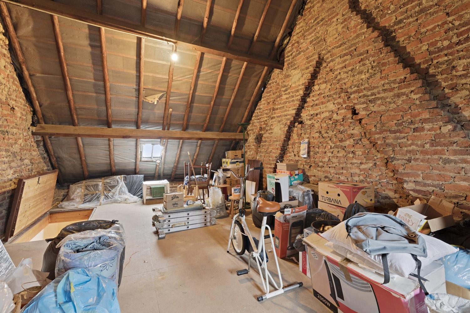 living met trap naar bovenverdieping, toilet - ingerichte keuken - berging - terras en tuin (achteraan toegankelijk via voetweg). De bovenverdieping omvat nachthal - 2 slaapkamers en een inrichtbare zolder