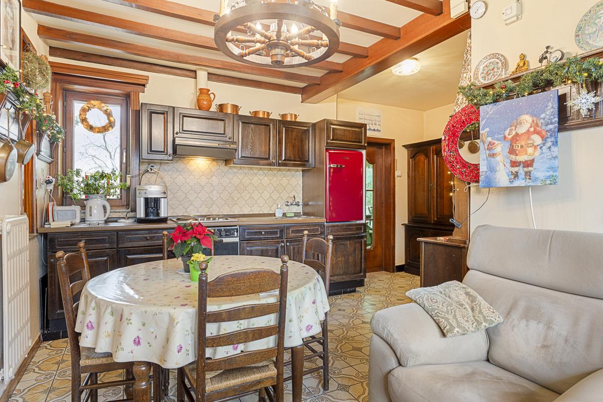 Verder beschikt men over een droge kelder, berging/wasplaats en een garage voor 1 wagen. Achteraan de woning bevindt zich nog een ruime bergruimte die dienstig kan zijn voor verschillende doeleinden. Tevens beschikt men over een gezellige voortuin, ruime oprit en gezellige zuiders gerichte tuin met tuinhuis.