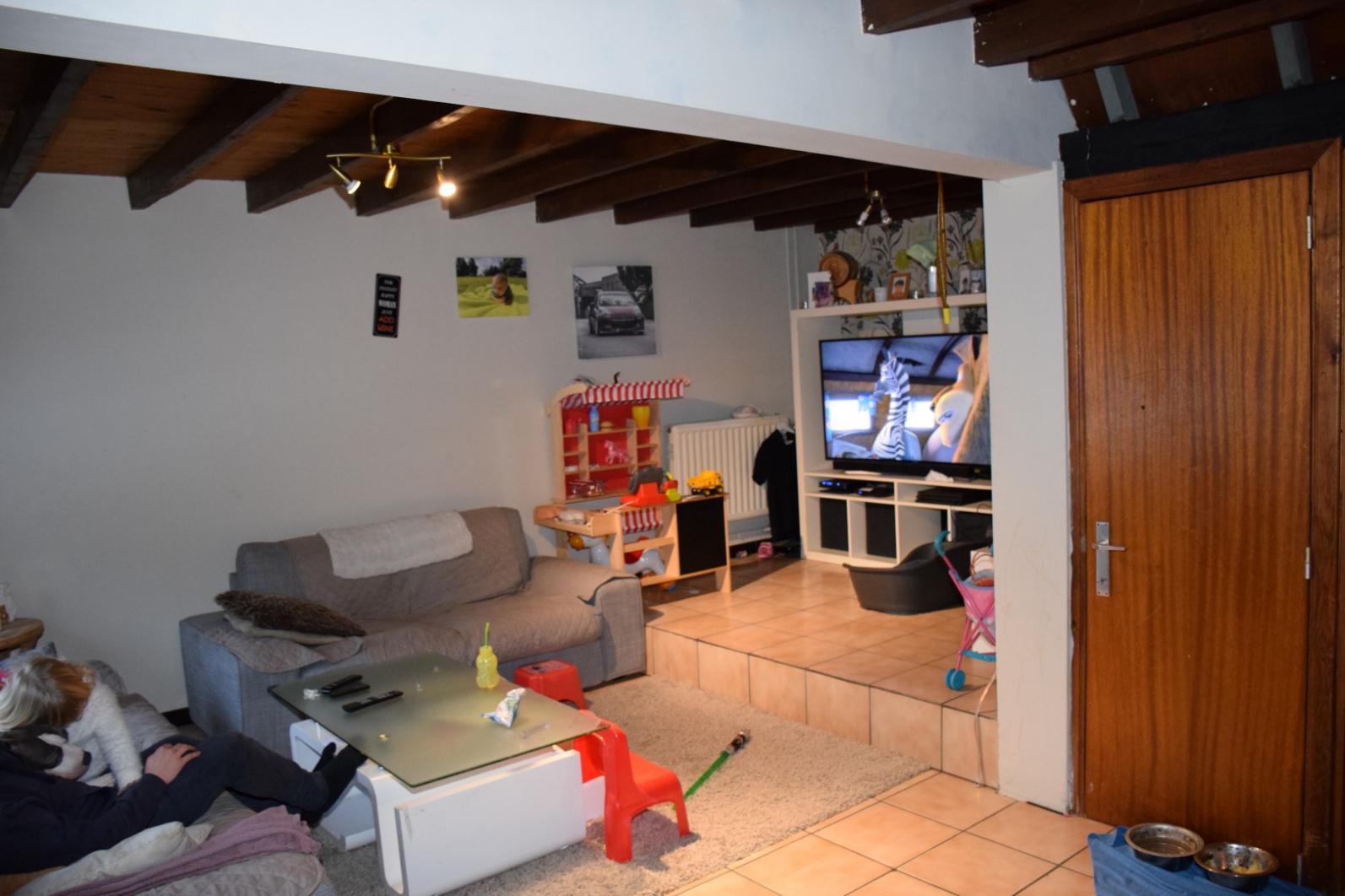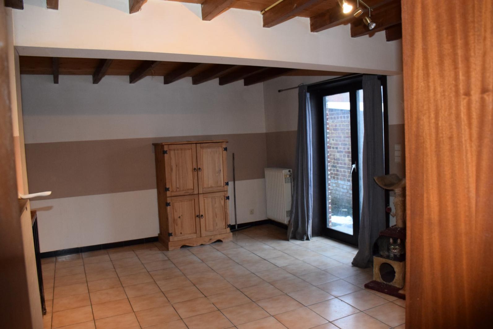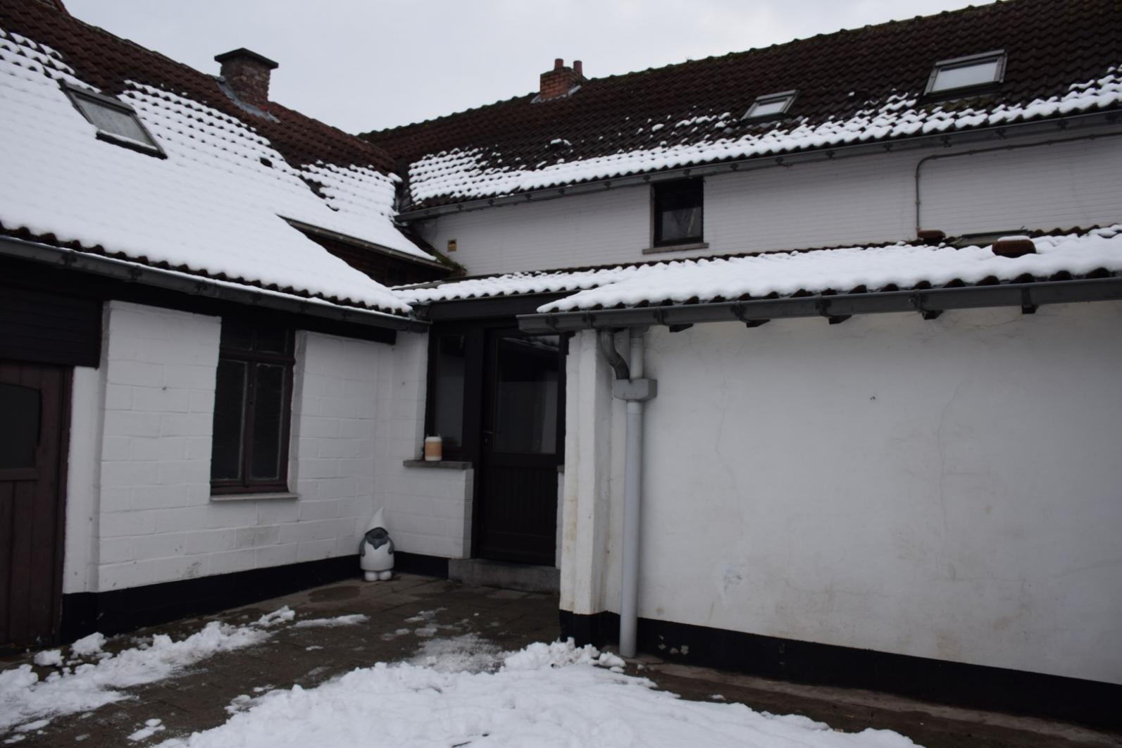 het woonhuis beschikt over kleine binnenkoer, garage en ruime berging/ kleine atelier, het woongedeelte omvat inkom - toilet - living met keuken - woonplaats - badkamer op gelijkvloers , verder is er een groot terras en tuin. De bovenverdieping omvat 3 slaapkamers.