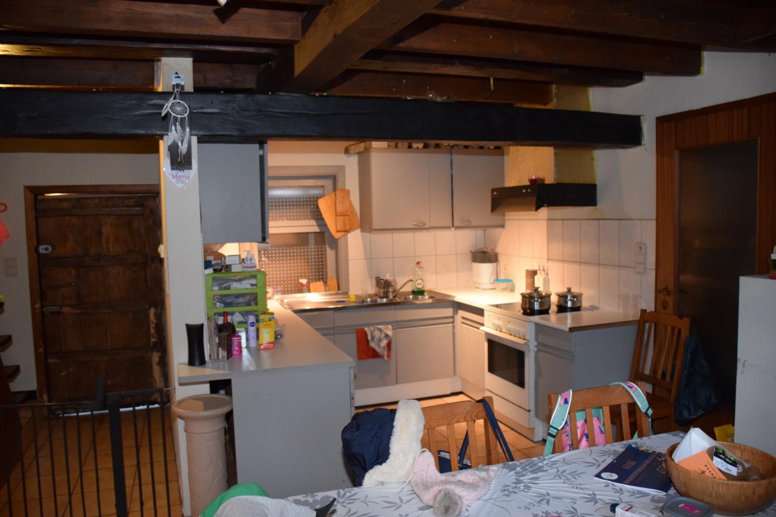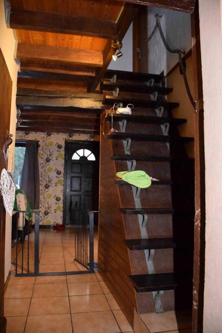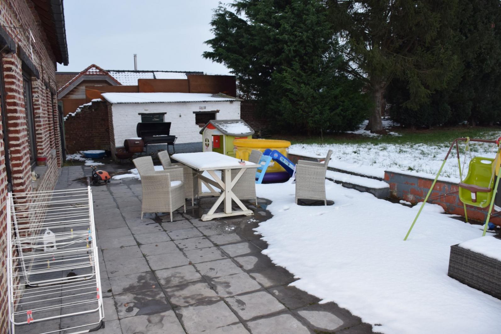 het woonhuis beschikt over kleine binnenkoer, garage en ruime berging/ kleine atelier, het woongedeelte omvat inkom - toilet - living met keuken - woonplaats - badkamer op gelijkvloers , verder is er een groot terras en tuin. De bovenverdieping omvat 3 slaapkamers.