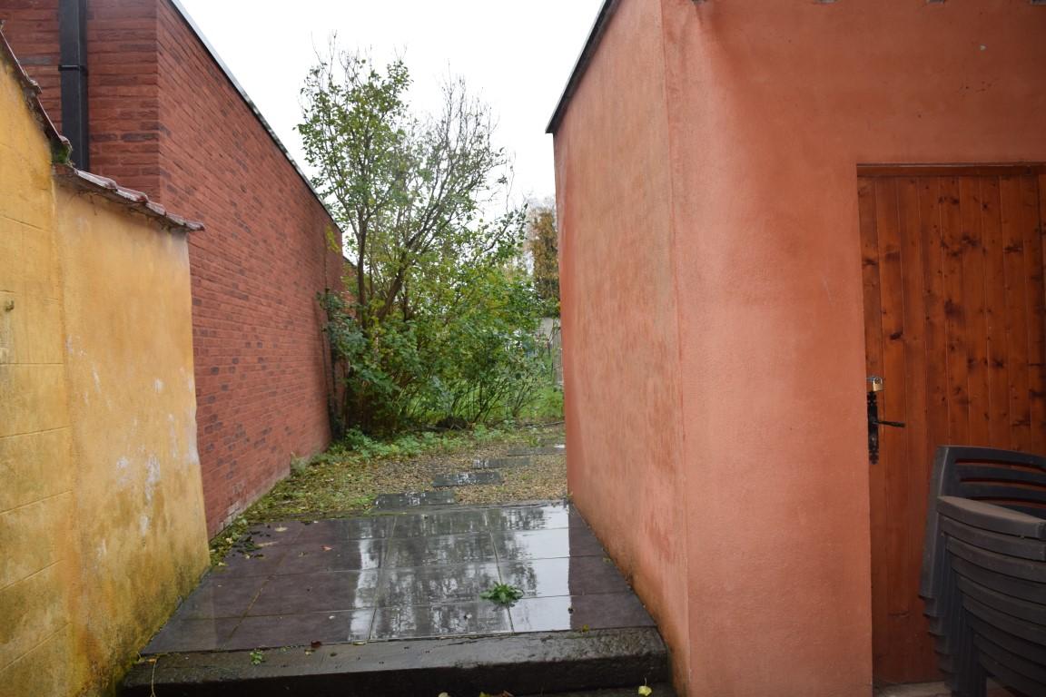 De woning is ingedeeld op gelijkvloers met Inkom/gang - toilet - badkamer - leefruimte (salon) - keuken met gasfornuis , biedt uitzicht op het terras en de grote stadstuin. Verder is er nog een ruime droge kelder en een buitenberging.