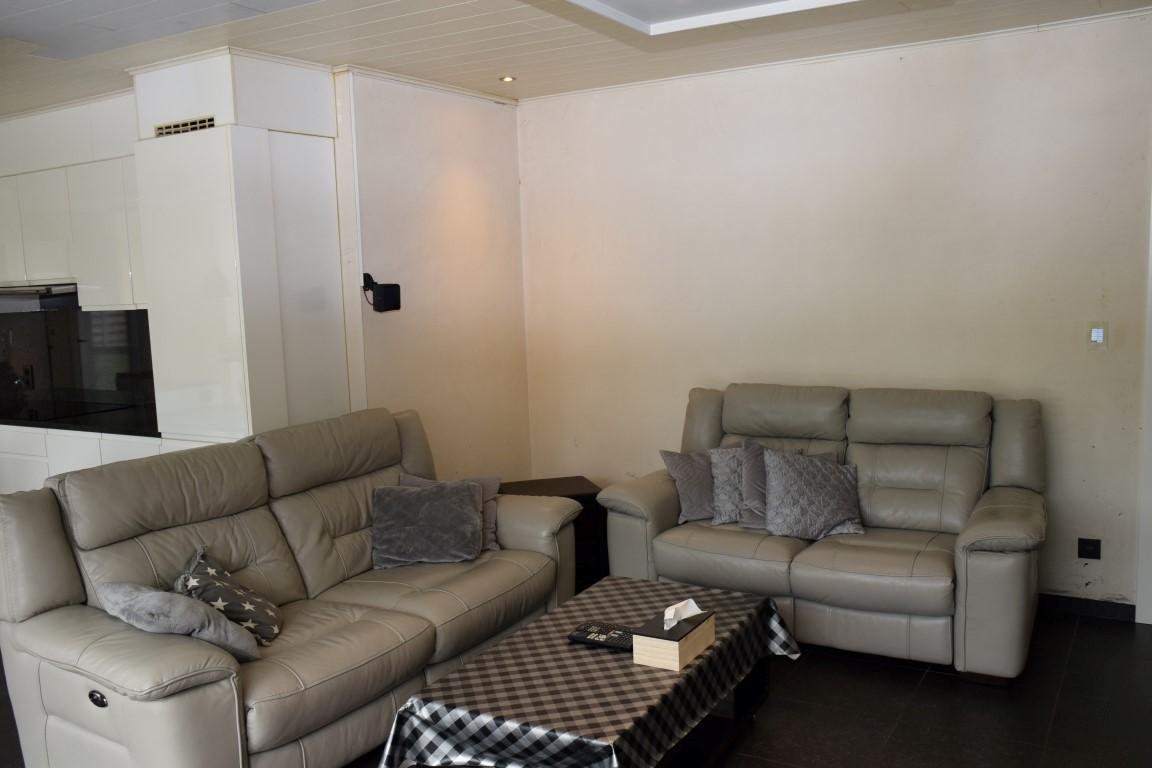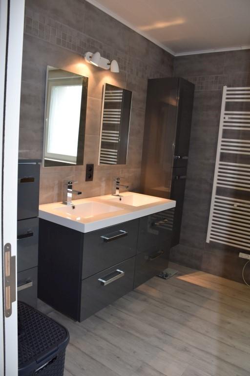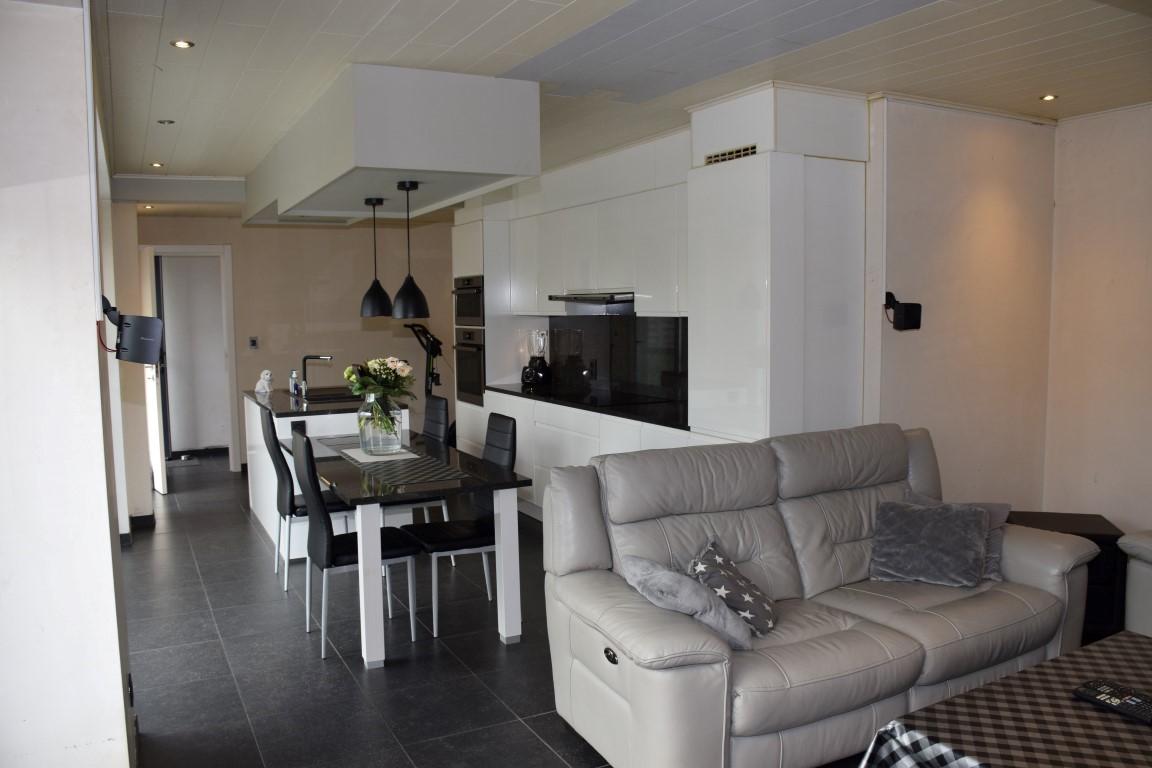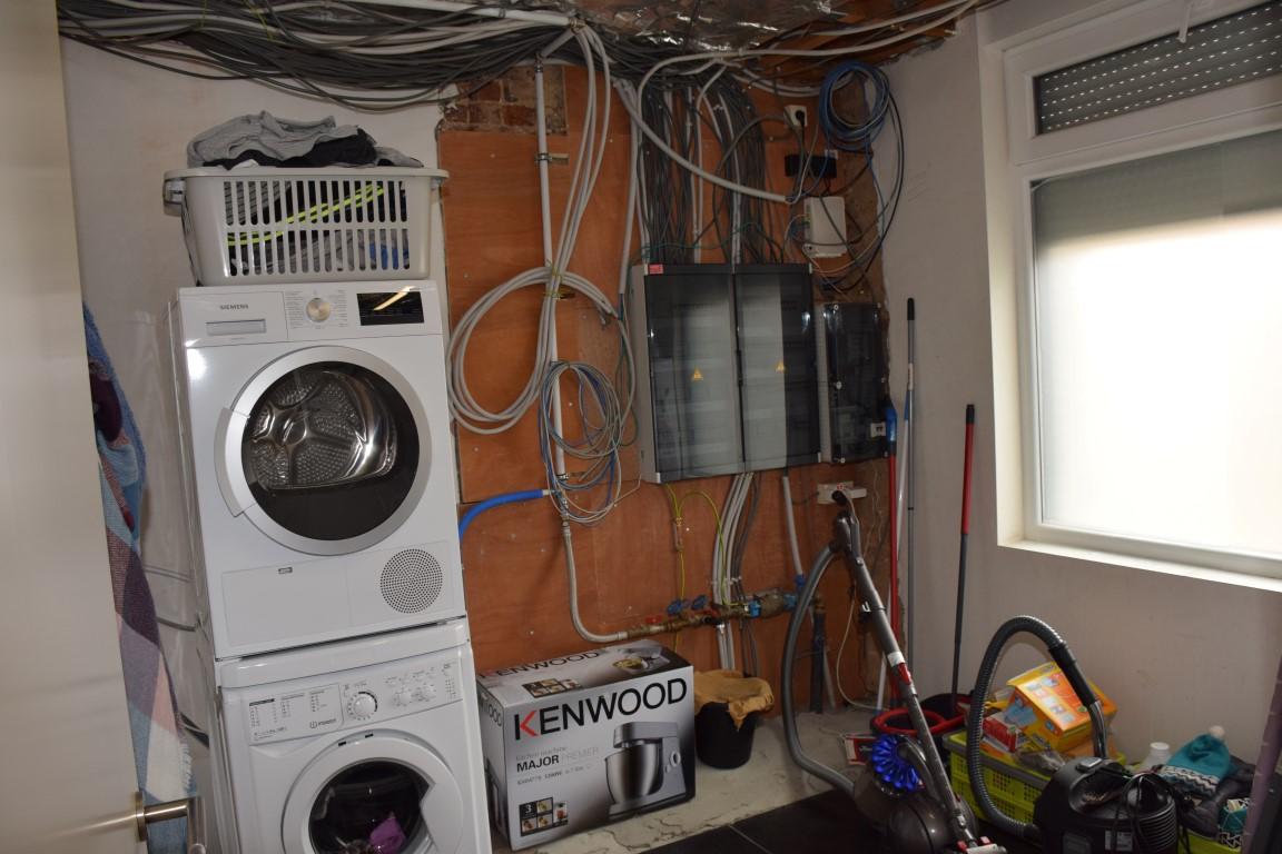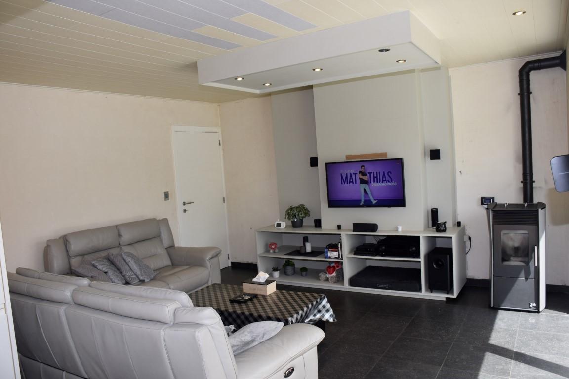 INDELING GELIJKVLOERS : inkom/gang - berging/wasruimte - gastentoilet - lichtrijjke living met open VOLLEDIG NIEUW INGERICHTE KEUKEN met eiland, de keuken is voorzien van alle nodige apparatuur (grote frigo; ceramische kookplaat, microgolf, oven, vaatwas), werkblad en opkanten in graniet, ook eiland voorzien van graniet + bijhorende granieten eettafel. Vanuit de living en keuken mooi zicht op het terras en de grote tuin (volledig omheind). Naast de keuken bevindt zich een gang die toegang geeft naar de tuin, de garage en de bovenverdieping. Deze omvat nachthal - 4 slaapkamers en een ruime ingerichte badkamer, via de trektrap in de gang begeeft men zich naar de zolderverdieping die nog kan ingericht worden voor 2 supplementaire slaapkamers.