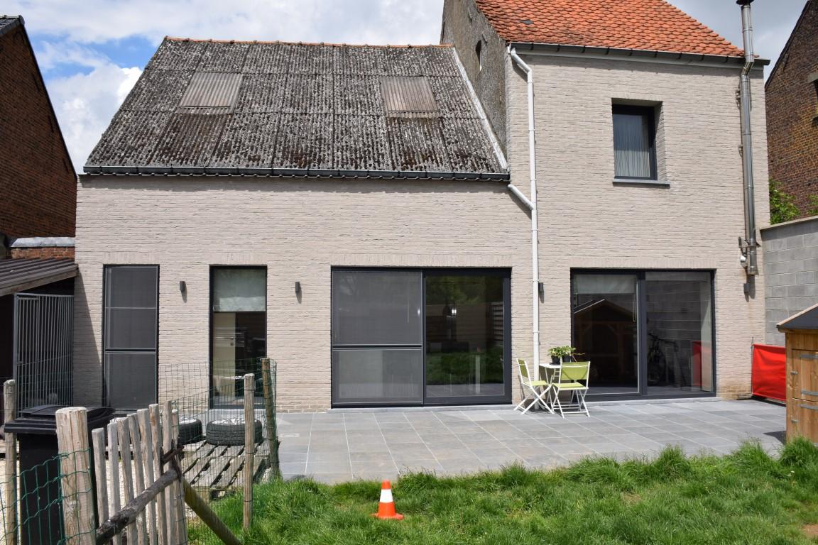In een rustige straat doch op 5 min rijden van het centrum van Ninove met zijn winkels, scholen, openbaar vervoer goed gelegen INSTAPKLAAR VERNIEUWD WOONHUIS met garage en grote tuin,