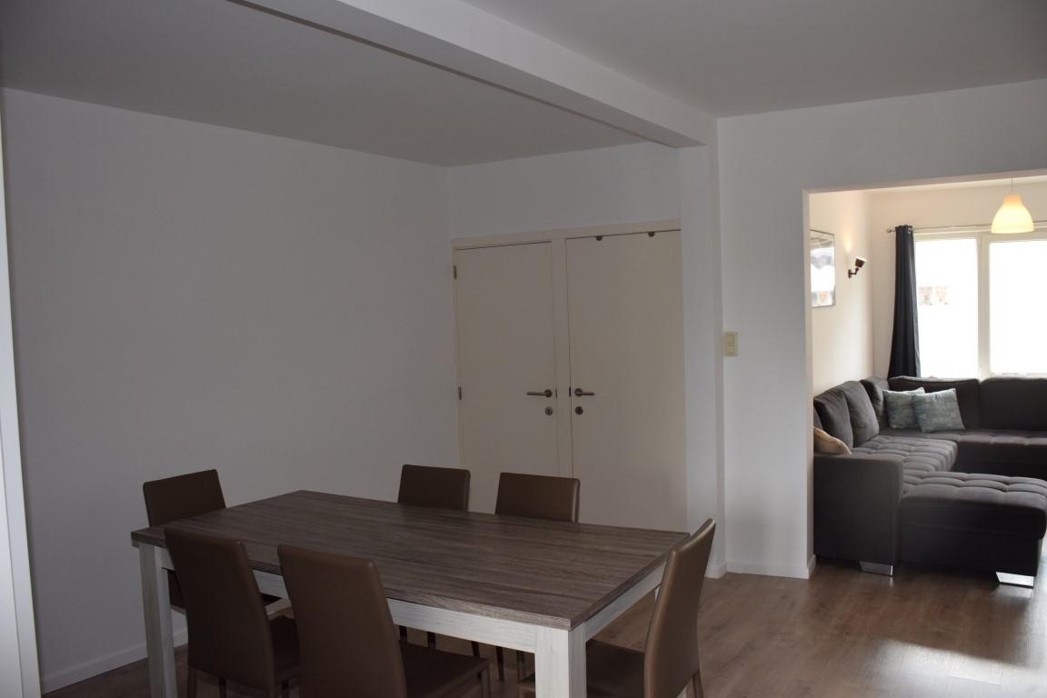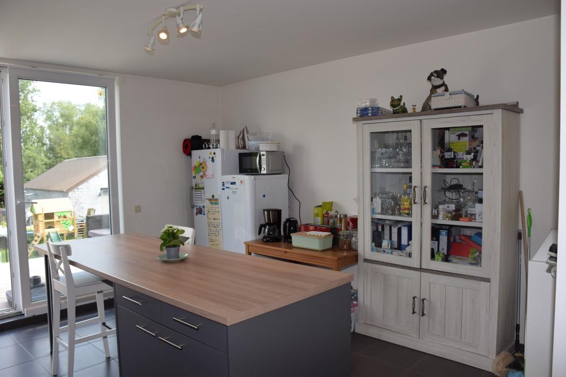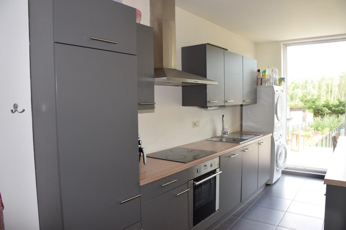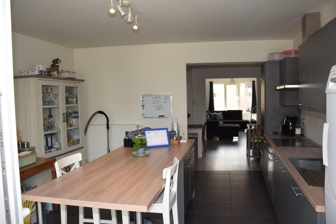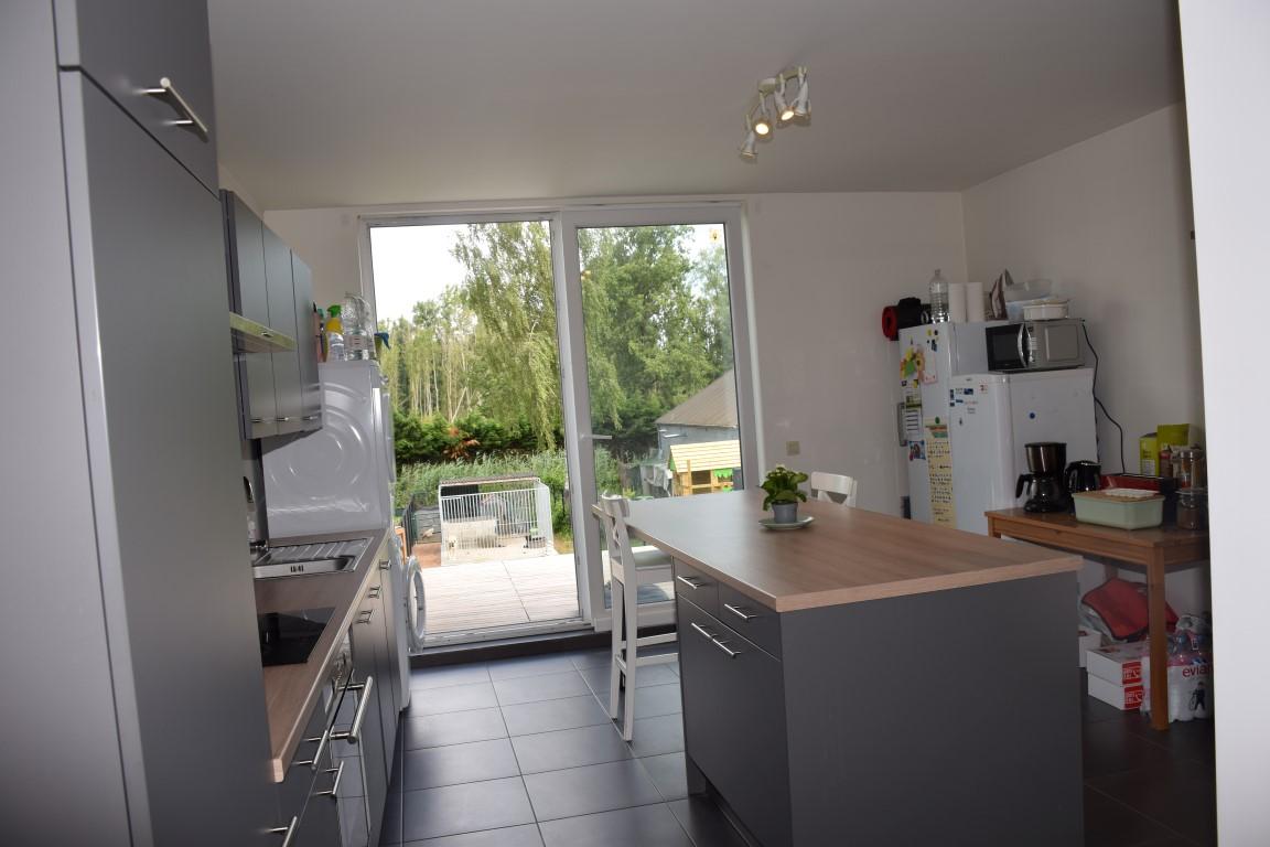 indeling : gelijkvloerse verdieping omvat gang met trap - living (salon/eetkamer) - ingerichte keuken met eiland (vaatwas - ceramische kookplaat - oven) terras en tuin