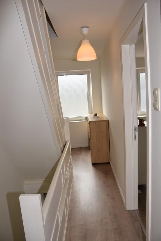 de bovenverdieping omvat nachthal - 2 slaapkamers en badkamer op eerste verdieping en 1 slaapkamer met kleine dressing op zolderverdiep.