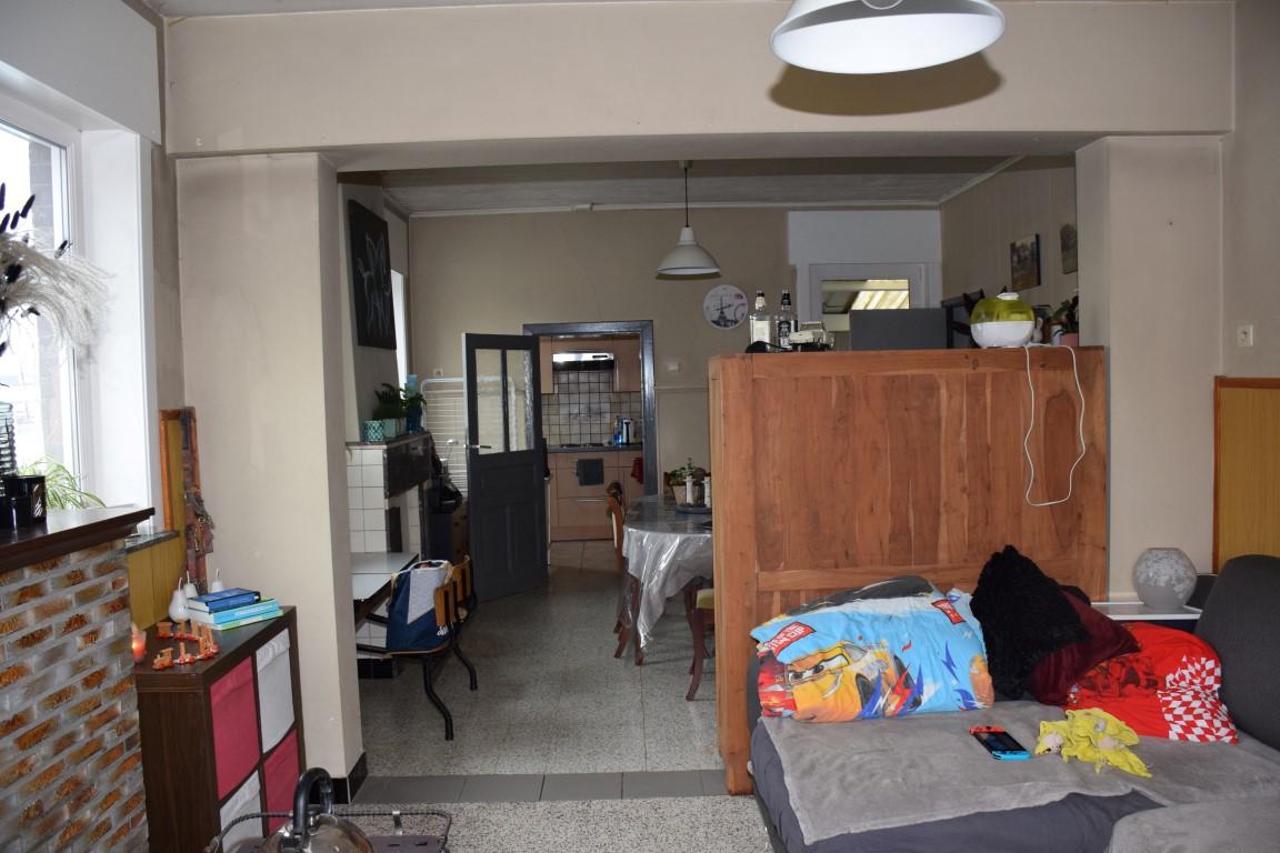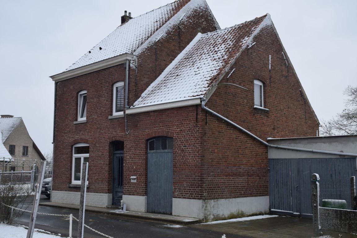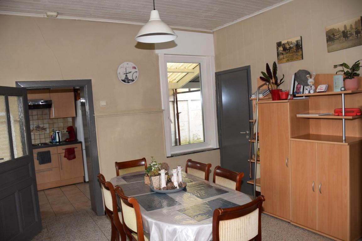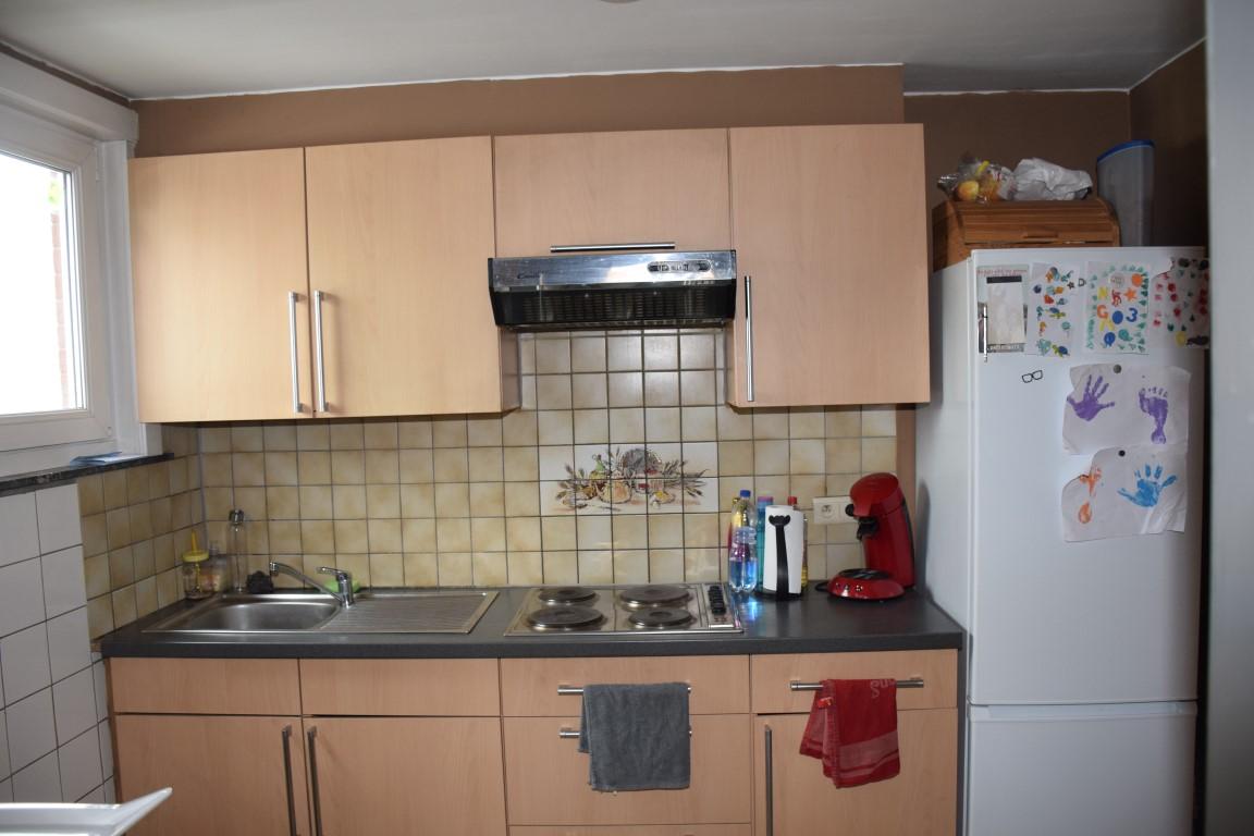 indeling : gang - living - ingerichte keuken - kelder - overdekte koer - toilet - garage en kleine bergruimten