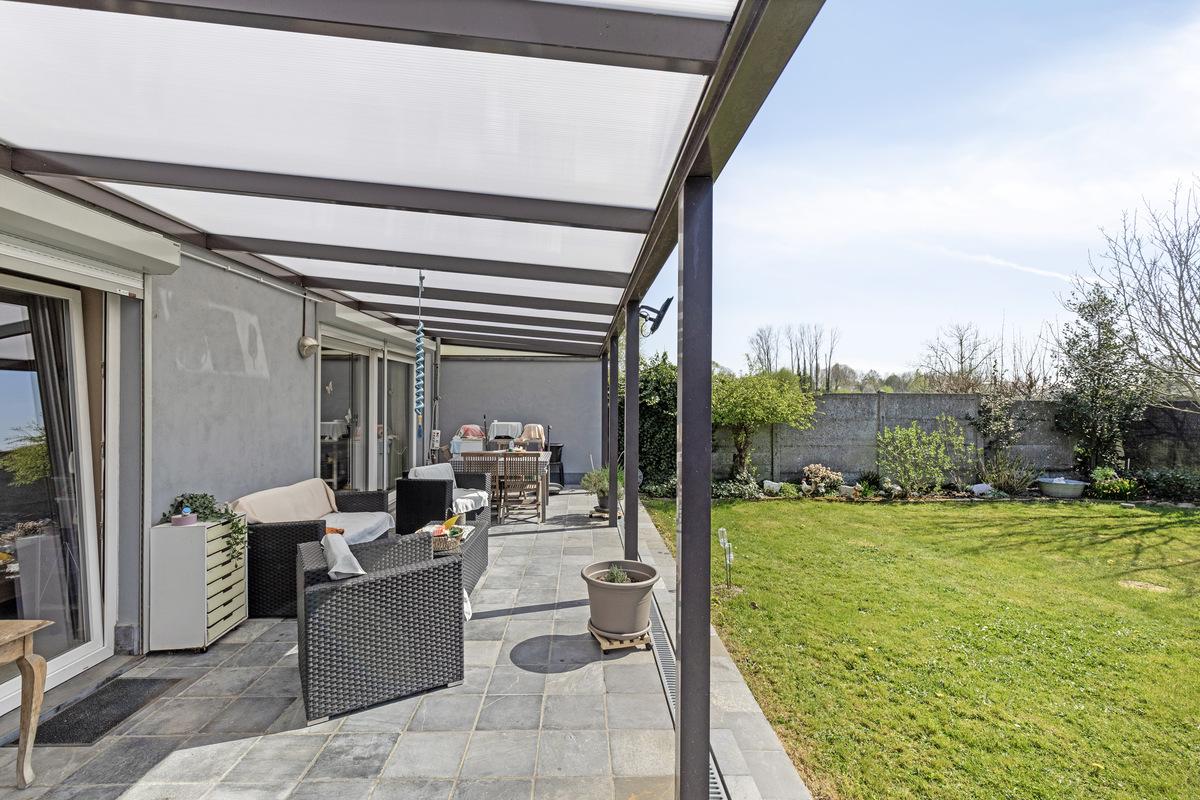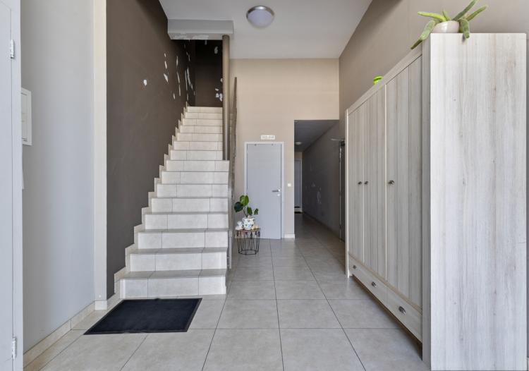 In een kleinschalig gebouw van 3 appartementen in totaal, nabij het dorp, scholen, openbaar vervoer, diverse buurtwinkel, Aldi, ... goed gelegen GELIJKVLOERSAPPARTEMENT ( 93 m²) Het appartement is ingedeeld met gang - toilet- lichtrijke leefruimte (salon en eetplaats) , open ingerichte keuken, bergruimte, badkamer, 2 slaapkamers, aansluitend aan de living bevindt zich een ruim zuiders gericht terras met overkapping en een tuin. Verder is er nog een ruime berging (+/- 6m²). GEEN RENOVATIEPLICHT Epc 334 kWh/m²