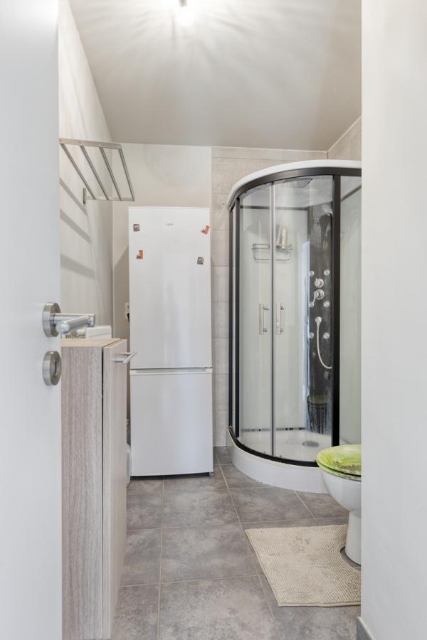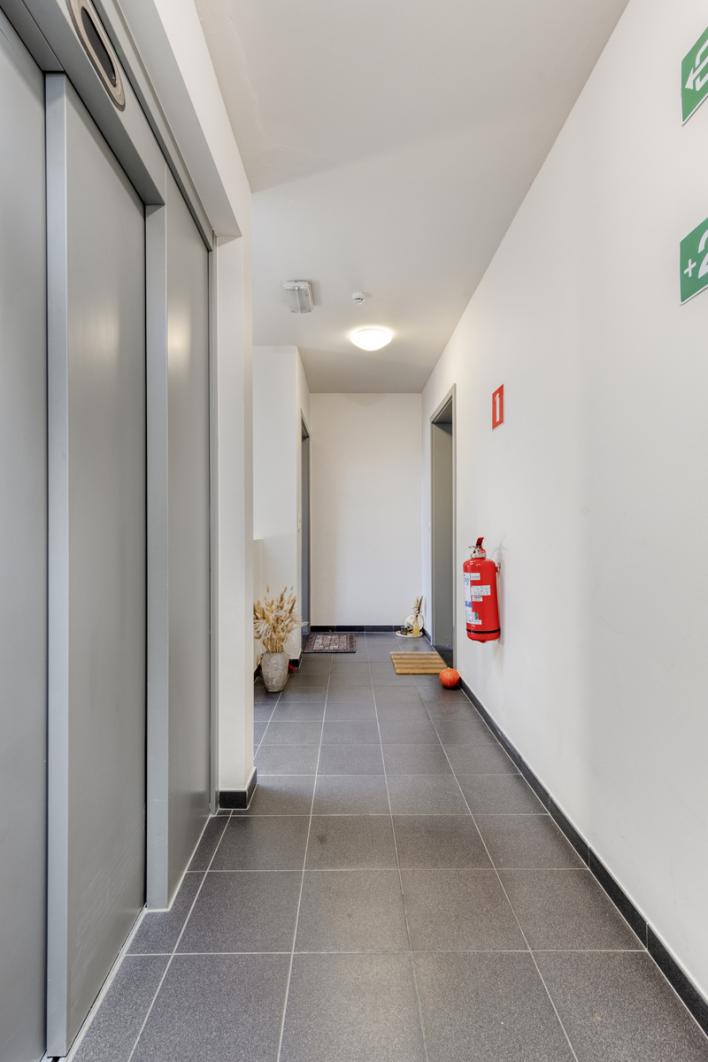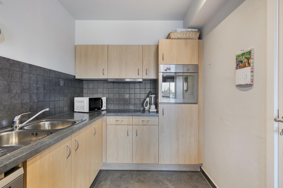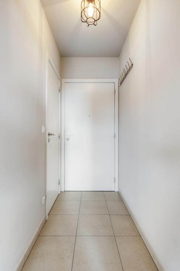Het appartement beschikt op de gelijkvloerse verdieping over een inkomhal die toegang geeft tot het gastentoilet, door de grote raampartijen komt men in de LICHTRIJKE LEEFRUIMTE en de open uitgeruste keuken. Verder beschikt het appartement over een ruim zuiders gericht terras.