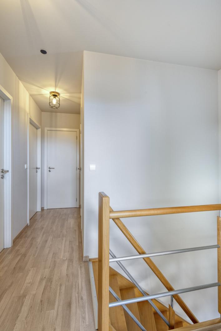 Via de trap in de leefruimte begeeft men zich naar de bovenverdieping die omvat de nachthal, twee badkamers waarvan een ingerichte badkamer met badmeubel en ligbad, en een tweede badkamer met toilet en douche. Ook bevinden er zich nog 3 slaapkamers en een kleine bergruimte. Lift aanwezig.