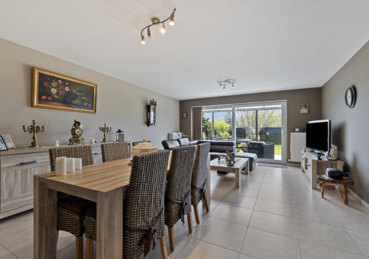 In een kleinschalig gebouw van 3 appartementen in totaal, nabij het dorp, scholen, openbaar vervoer, diverse buurtwinkel, Aldi, ... goed gelegen GELIJKVLOERSAPPARTEMENT ( 93 m²) Het appartement is ingedeeld met gang - toilet- lichtrijke leefruimte (salon en eetplaats) , open ingerichte keuken, bergruimte, badkamer, 2 slaapkamers, aansluitend aan de living bevindt zich een ruim zuiders gericht terras met overkapping en een tuin. Verder is er nog een ruime berging (+/- 6m²). GEEN RENOVATIEPLICHT Epc 334 kWh/m²