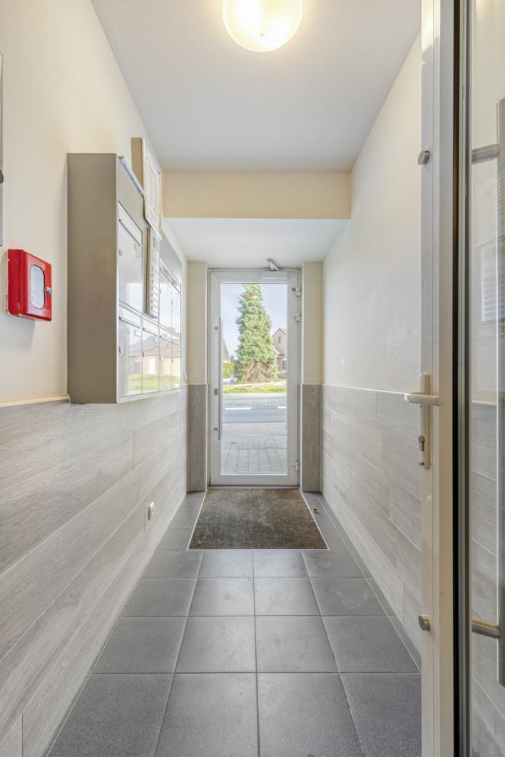 Het appartement beschikt op de gelijkvloerse verdieping over een inkomhal die toegang geeft tot het gastentoilet, door de grote raampartijen komt men in de LICHTRIJKE LEEFRUIMTE en de open uitgeruste keuken. Verder beschikt het appartement over een ruim zuiders gericht terras.