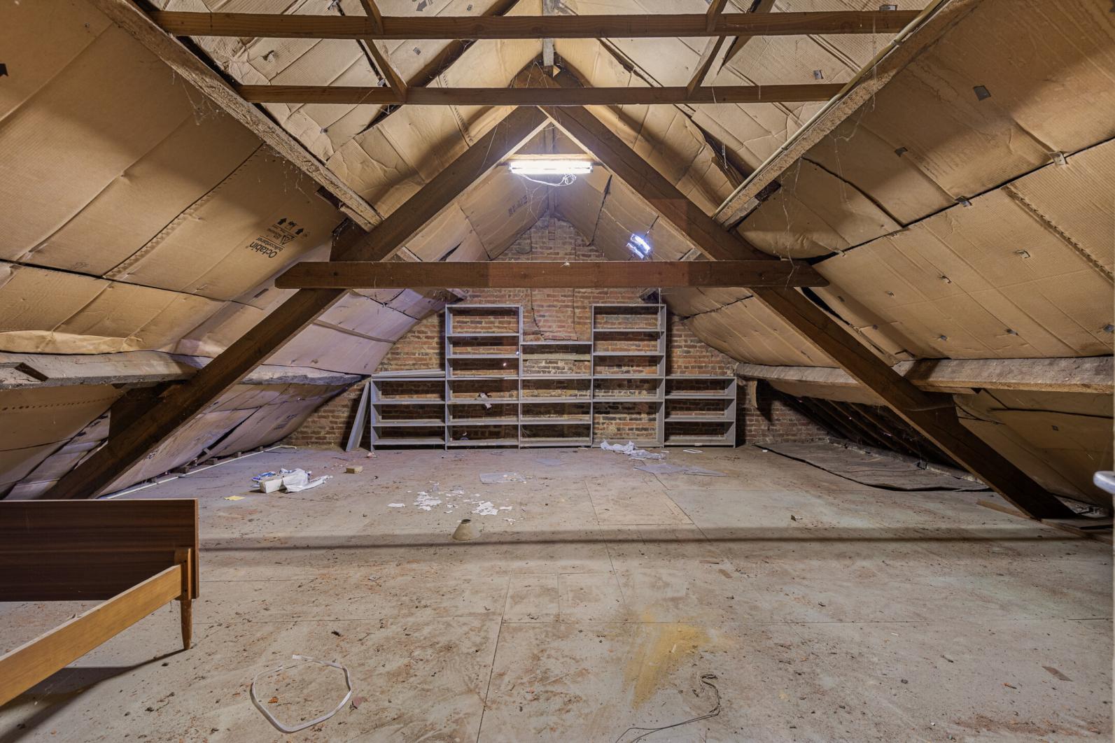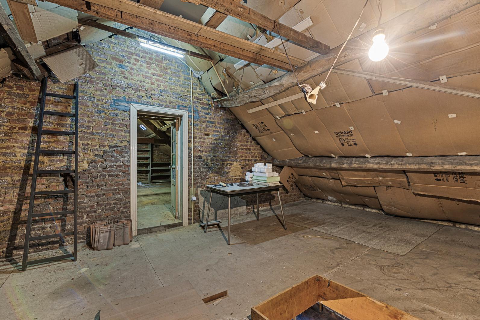 De bovenverdieping omvat 4 slaapkamers en een ruime badkamer, via een trektrap begeeft men zich naar de ruime zolder waar nog slaapkamers kunnen voorzien worden.