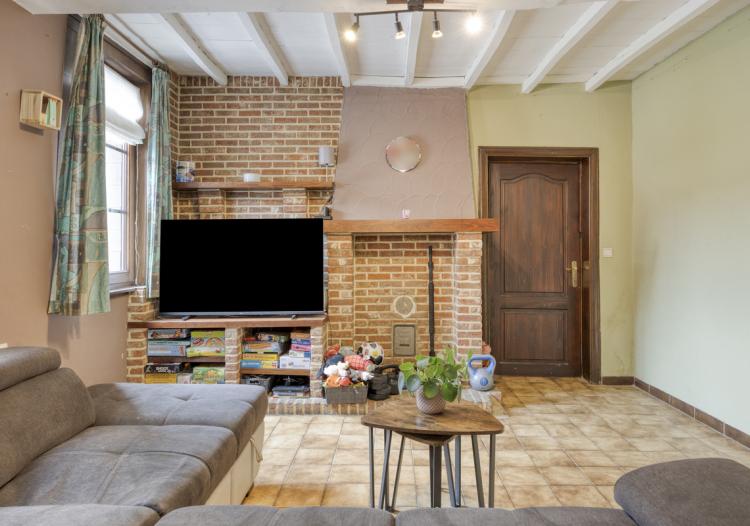 In het dorp, in een rustig gelegen doodlopende straat, nabij school, diverse buurtwinkels bevindt zich deze op te frissen DRIEGEVELWONING met garage en koer/terras (kan omgevormd worden tot tuin).