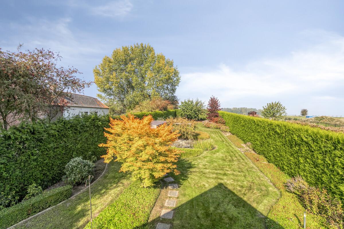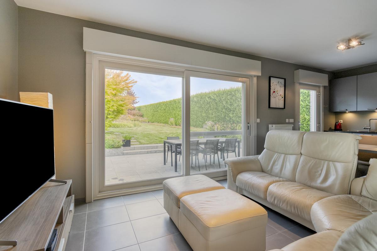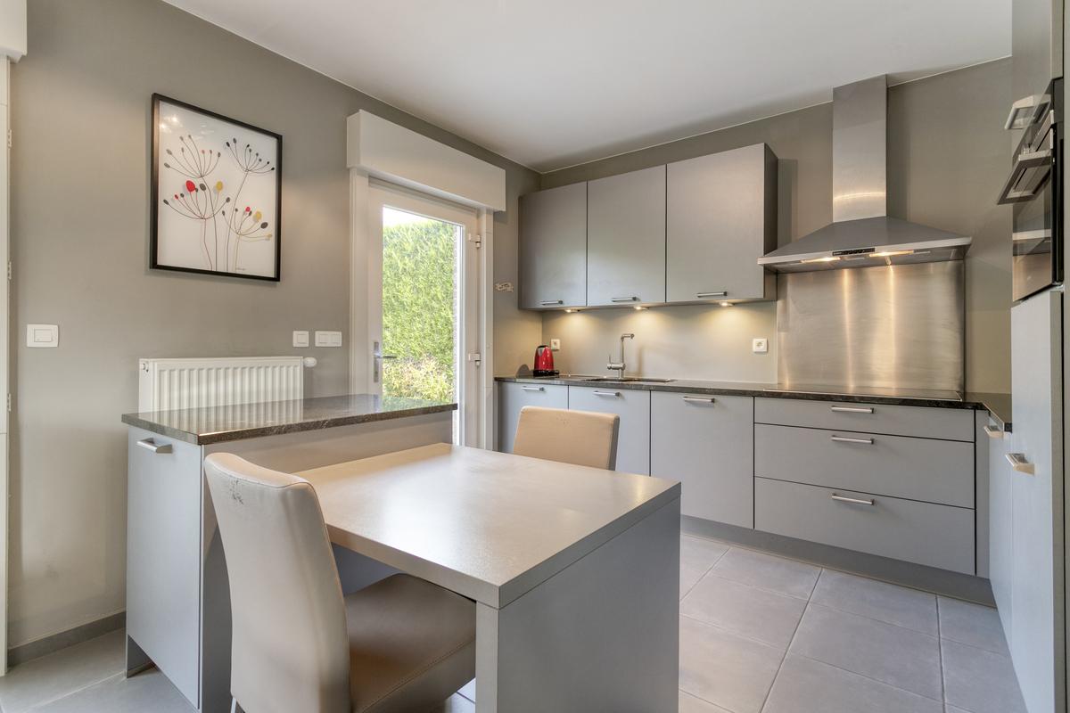 De woning is ingedeeld op gelijkvloers met lichtrijke inkomhal met trap, gastentoilet, lichtrijke leefruimte (salon, eetplaats) met open ingerichte keuken voorzien van alle nodige apparatuur en afgewerkt met granieten werkblad. Vanuit de leefruimte/salon en keuken en het mooi aangelegd ruim terras is het gezellig genieten van het uitzicht op de mooi aangelegde ruime siertuin, de tuin is volledig omheind, en vooraan voorzien van een automatische hek. Verder is er nog een ruime garage met bergruimte. De bovenverdieping omvat 2 slaapkamers, bergruimte en een ingerichte badkamer. De woning wordt verwarmd via centrale verwarming op aardgas.