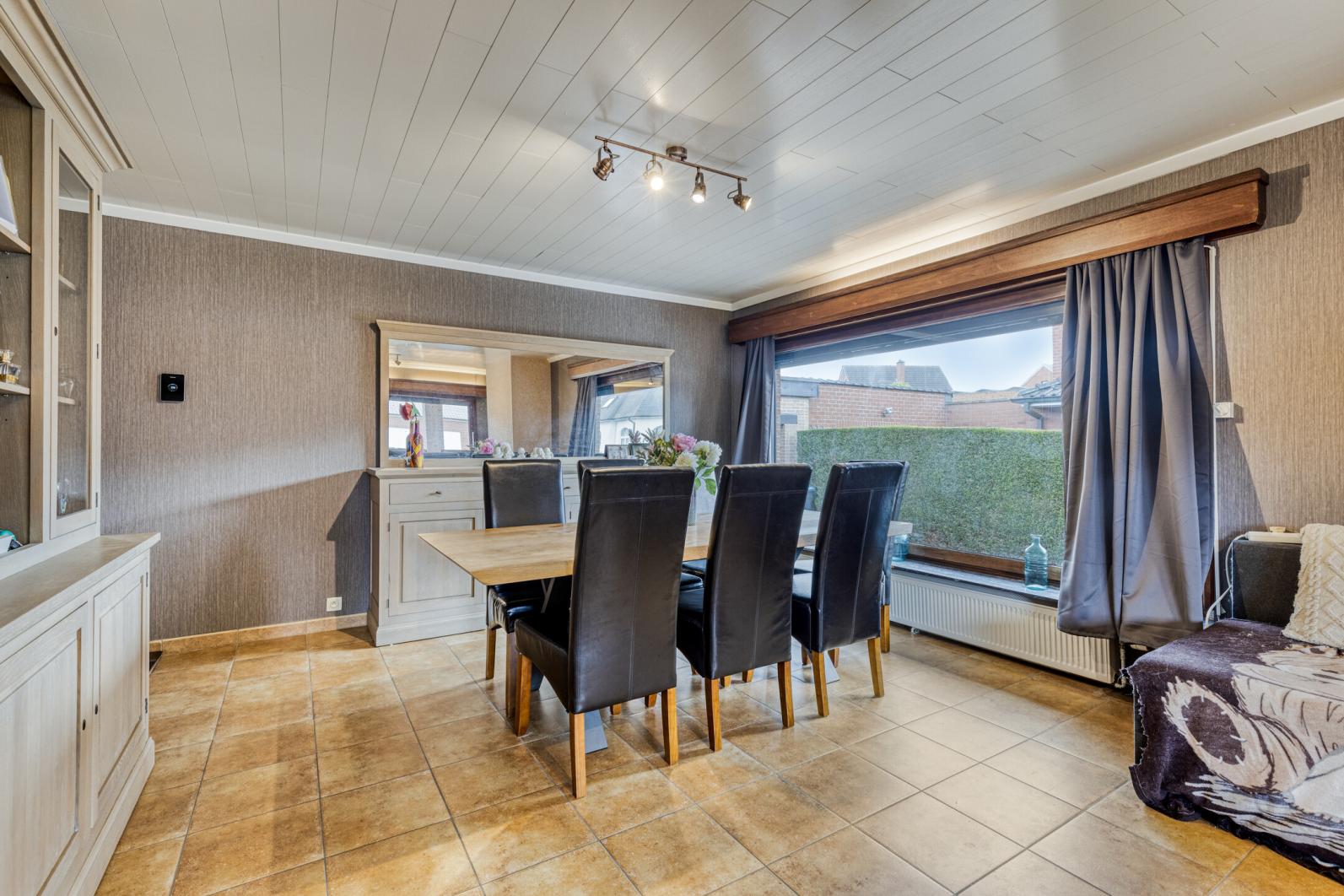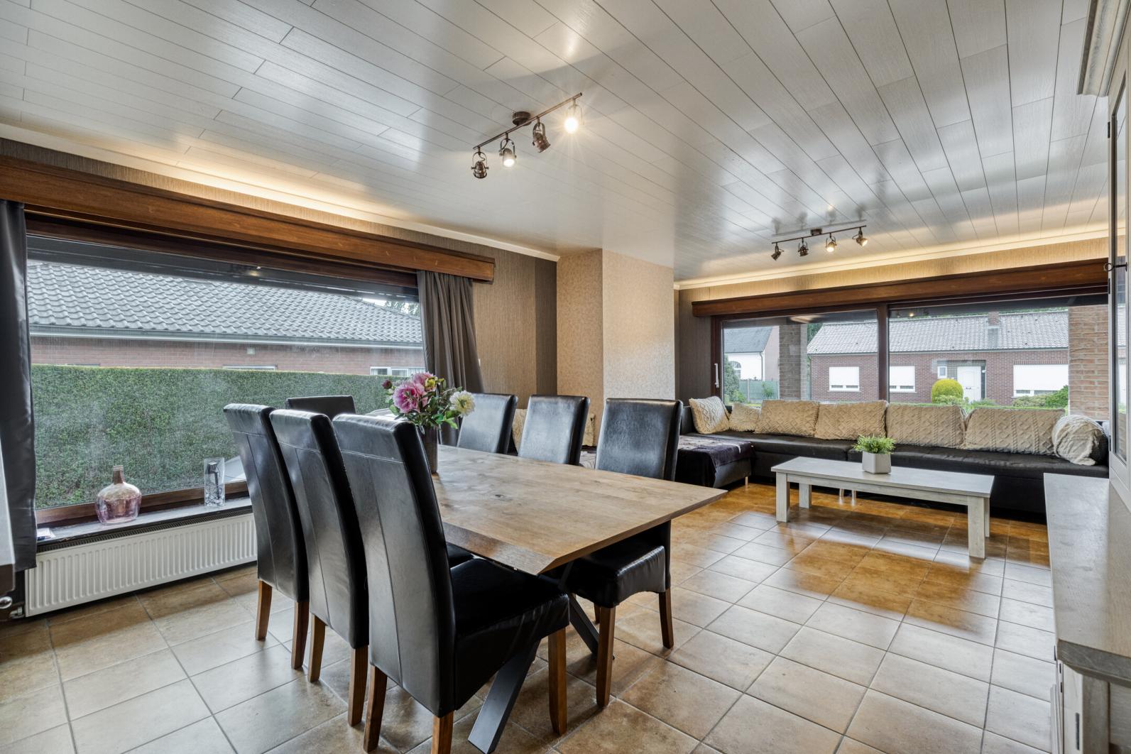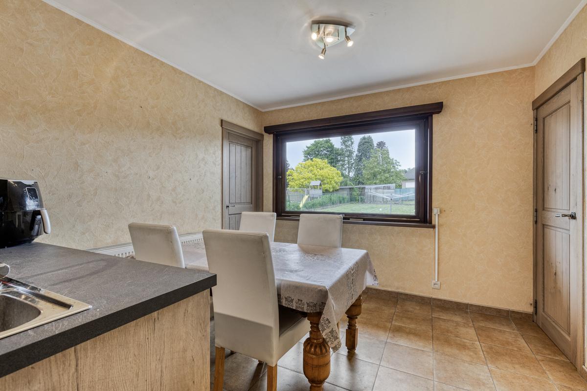 De woning is ingedeeld met inkom met toilet , lichtrijke woon- en leefruimte voorzien van pelletkachel, recent nieuwe ingerichte keuken, voorzien van nodige apparatuur, vaatwas inclusief. Verder beschikt de woning over 3 slaapkamers, een ruime zuiders gerichte veranda met prachtig zicht op de grote tuin met tuinhuis, droge kelder en een zeer ruime garage die plaats biedt voor 3 wagens en achteraan voorzien is van doorrijpoort. Rondom de woning ligt een aangelegde, omheinde tuin, een oprit voor 3 wagens.