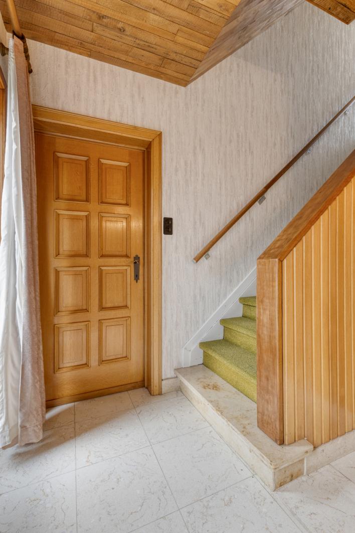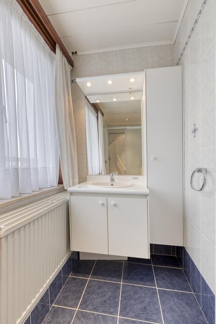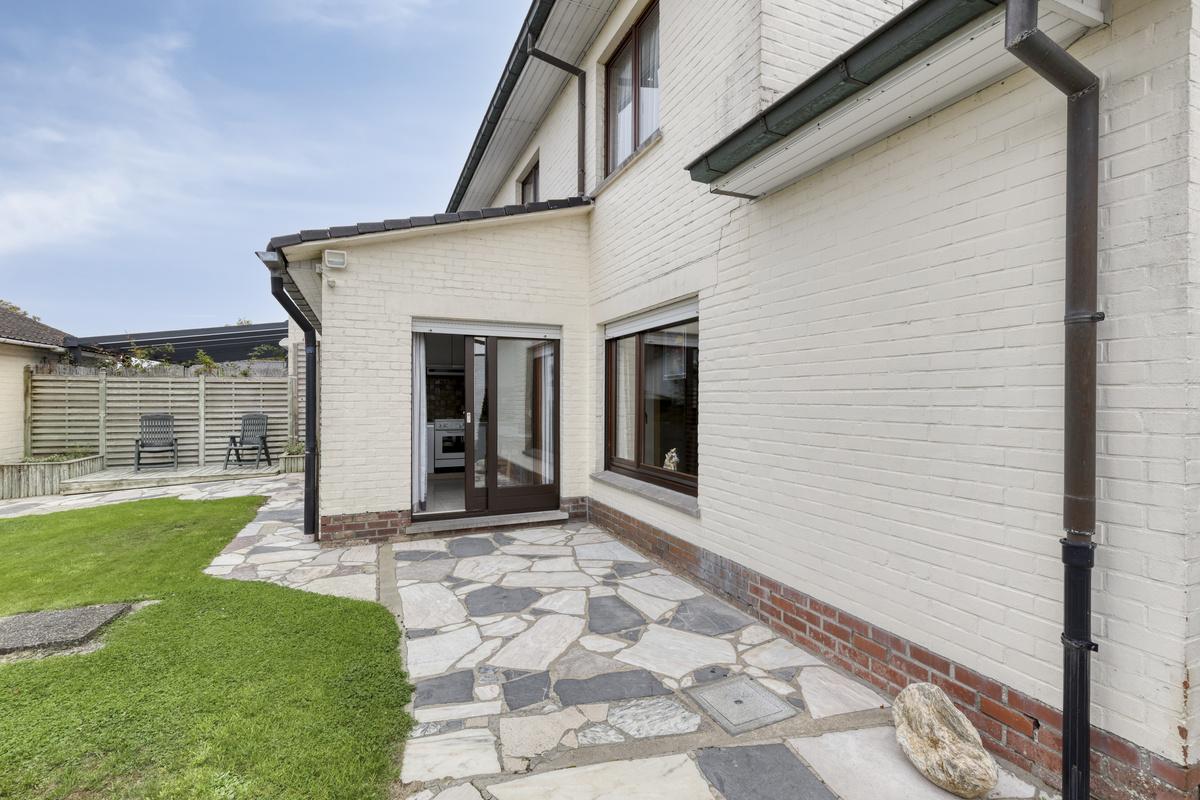 Deze verzorgde woning is ingedeeld op de gelijkvloerse verdieping met inkomhal met vestiaire en apart toilet, lichtrijke ruime living met openhaard, ruime ingerichte keuken met uitzicht op het terras en de grote tuin, bergruimte. Garage voor 1 wagen met extra bergruimte en voorzieningen voor wasmachine en droogkast. De eerste verdieping bestaat uit : nachthal, 4 slaapkamers waarvan 2 zeer ruime en een ingerichte badkamer met ligbad. Verder beschikt de woning over een stapelzolder, oprit, voortuin, ruime tuin, terras en opbergruimte. Dak reeds vernieuwd.