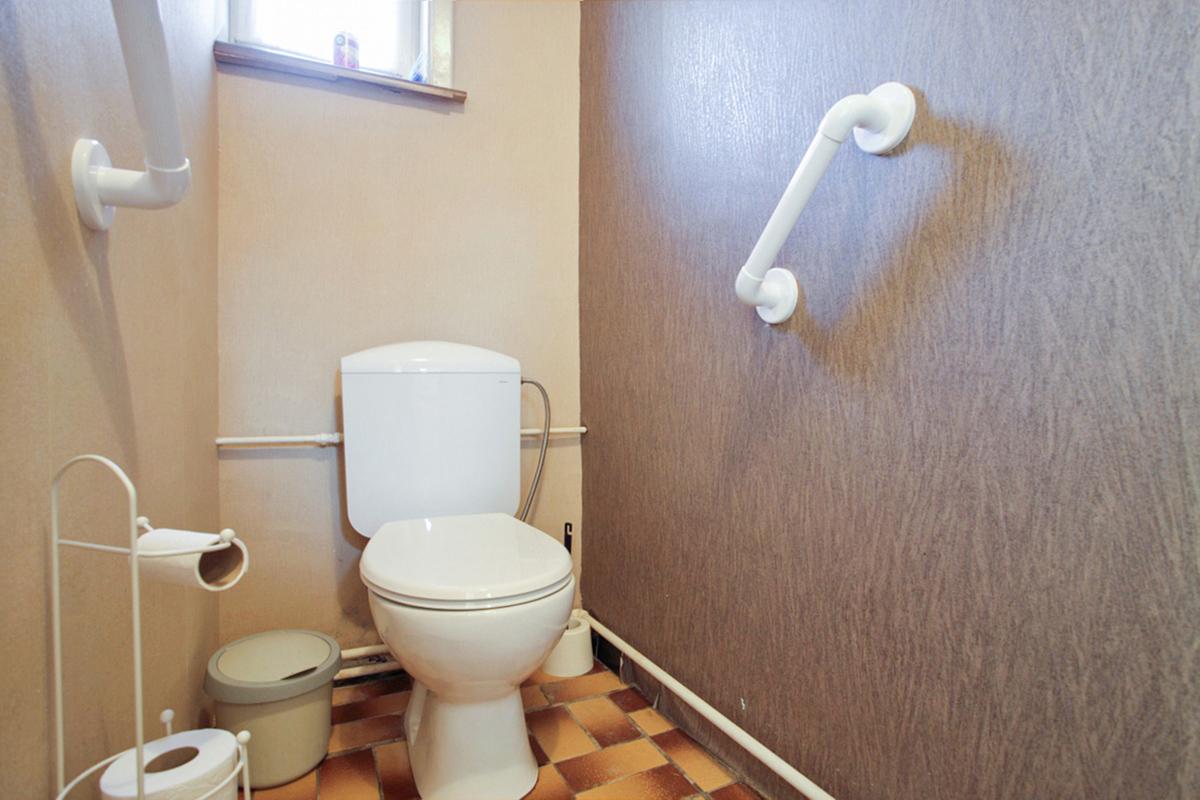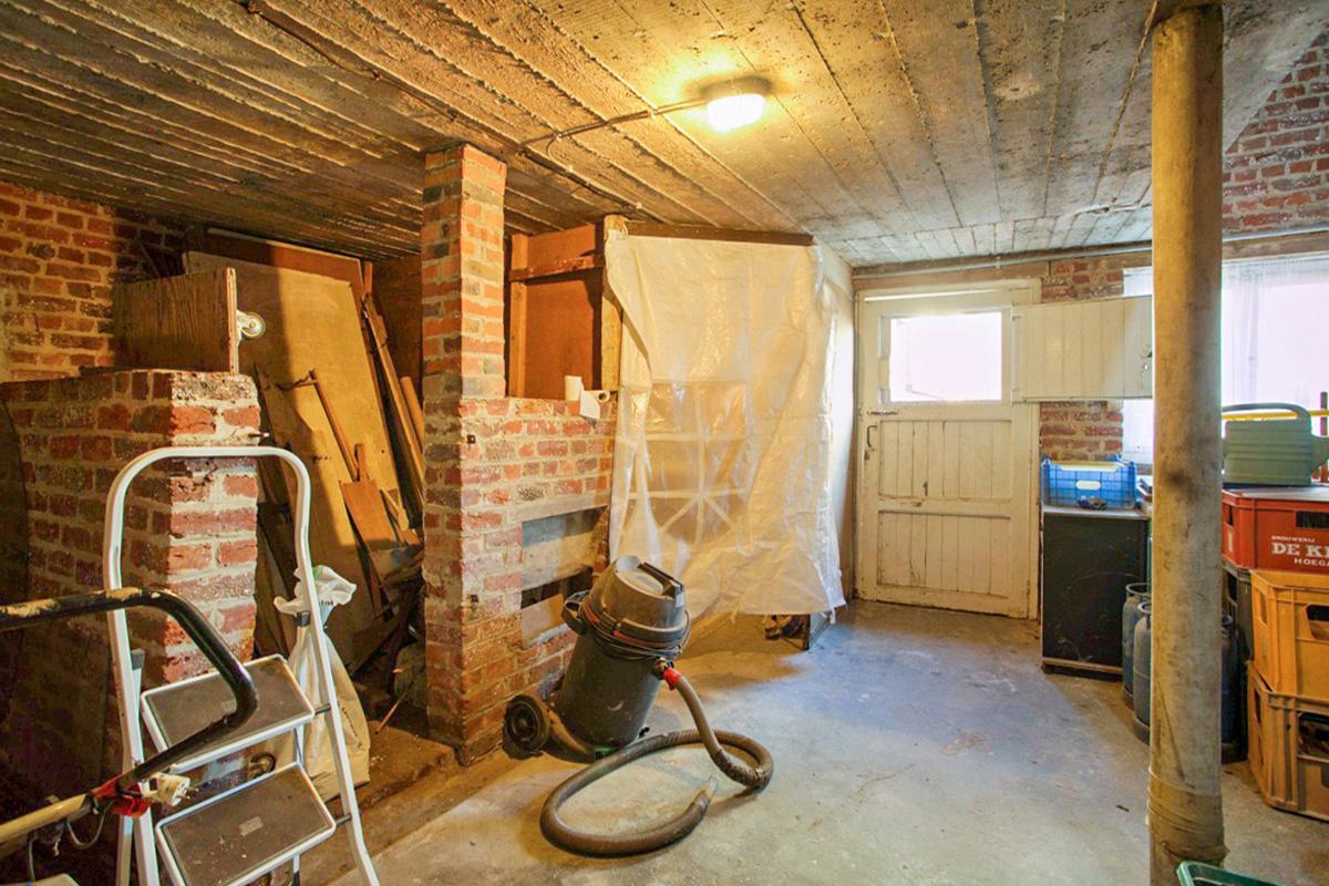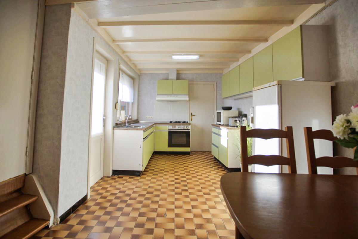 gelijkvloers is ingedeeld met inkom - leefruimte ( salon - eetplaats) -ingerichte keuken met aansluitend terras -verder bevindt zich nog een toilet en bijgebouw (ideaal om het woonhuis hiermee uit te breiden)