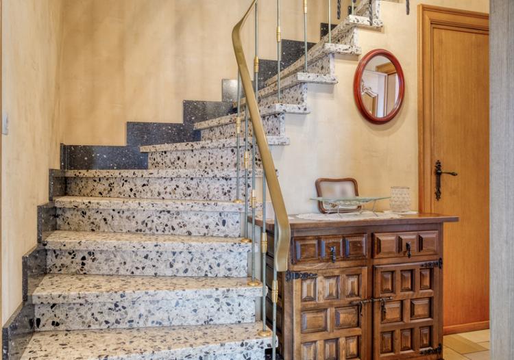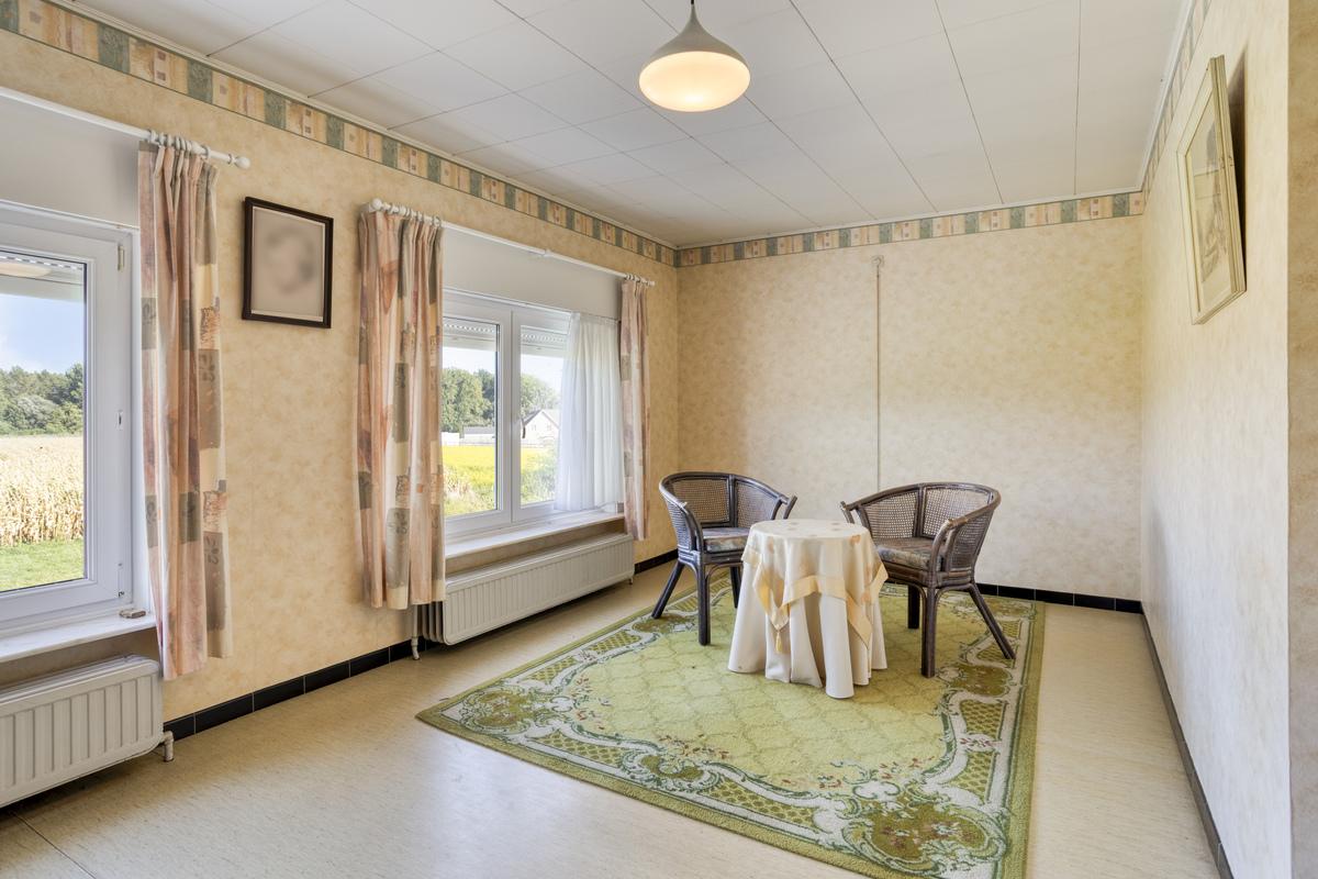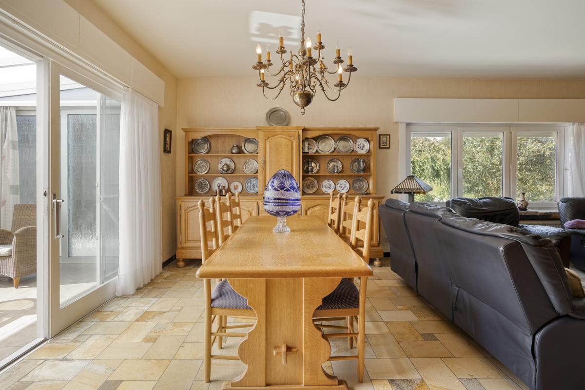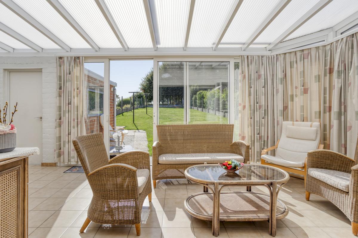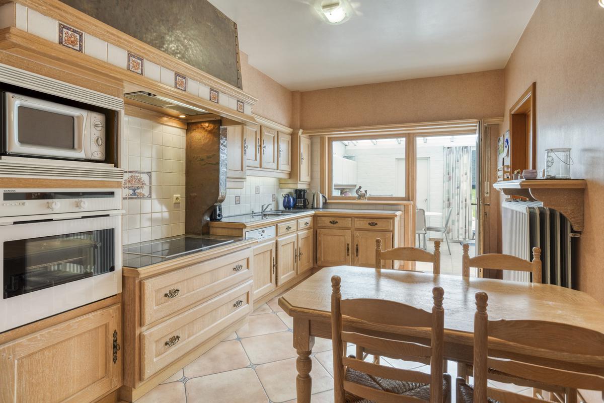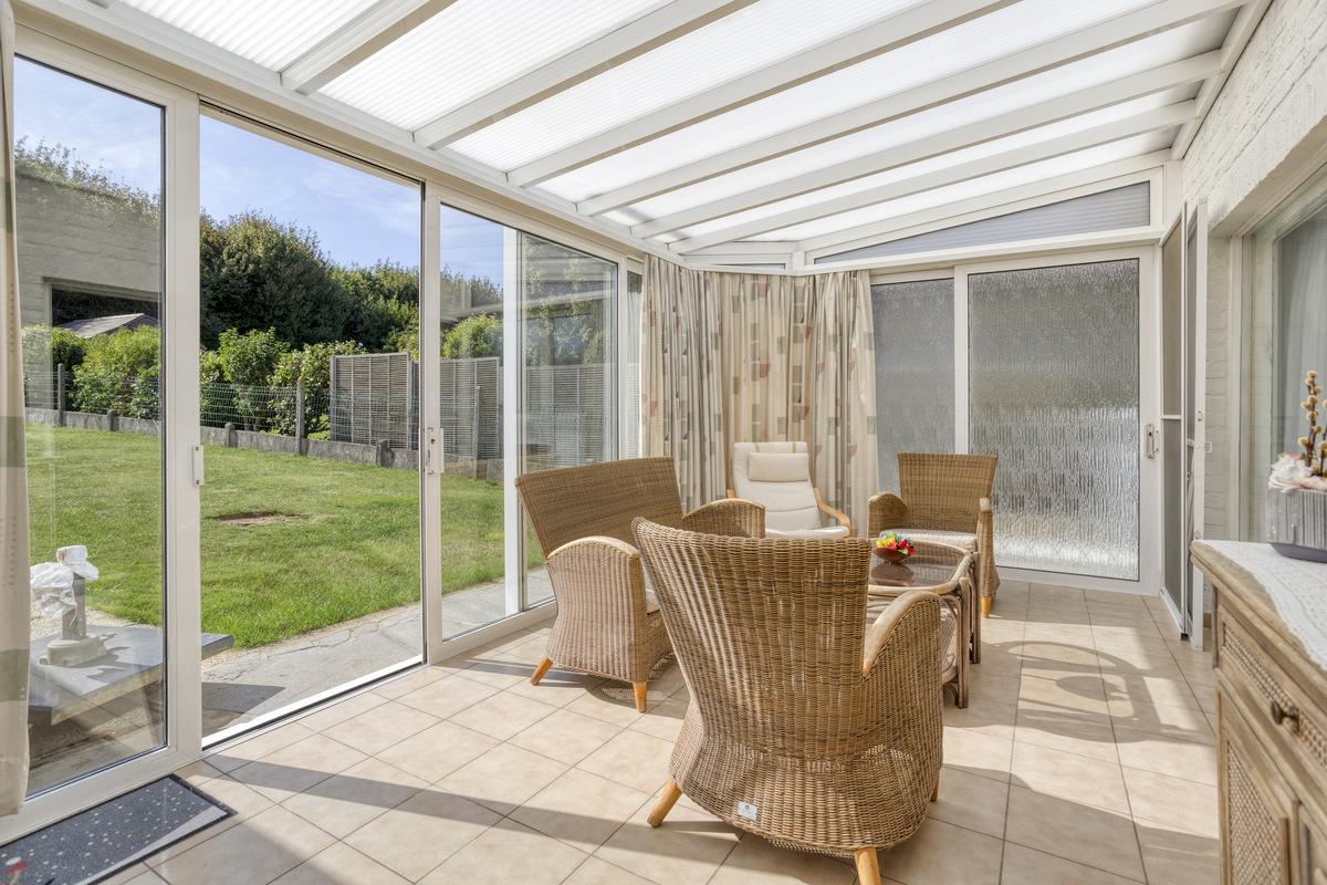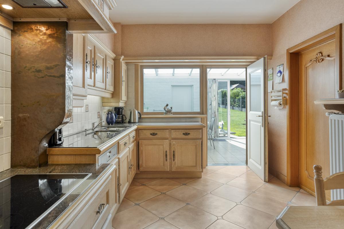 Deze woning heeft een mooie lichtrijke inkomhal met trap, toilet, bureel of slaapkamer, een grote leefruimte met natuurlijk lichtinval, een ruime ingerichte massief eiken keuken voorzien van alle apparatuur en afgewerkt met granieten blad, ingerichte badkamer zich bevindende op gelijkvloerse verdieping. Verder is er nog een veranda waarin het gezellig genieten is van het mooie uitzicht op de zuiders gerichte tuin. De bovenverdieping omvat nachthal, 3 slaapkamers.