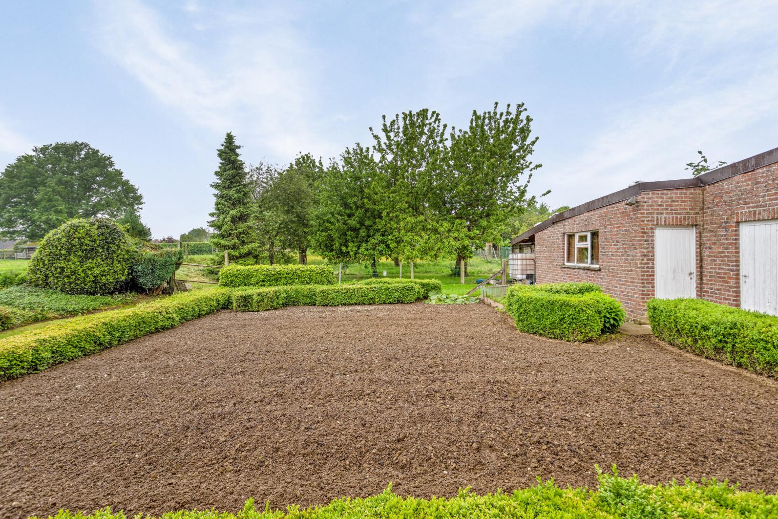 Aansluitend aan de living bevindt zich de ruime keuken van waaruit men zich tot het terras en de tuin begeeft. In de ruime verzorgde tuin is het aangenaam vertoeven en deze is tevens ideaal voor tuin- of dierenliefhebbers. De tuin beschikt over enkele handige buitenbergingen die dienstig kunnen zijn voor grasmaaier en fietsen.