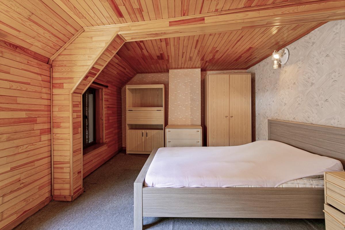 De bovenverdieping omvat 2 zeer ruime slaapkamers ( waarbij 1 ruime slpk kan onderverdeeld worden in 2) , vaste trap naar zolder waar zich de mogelijkheid biedt voor bijkomende slaapkamers.
