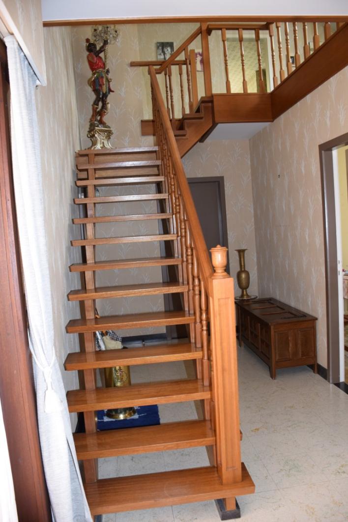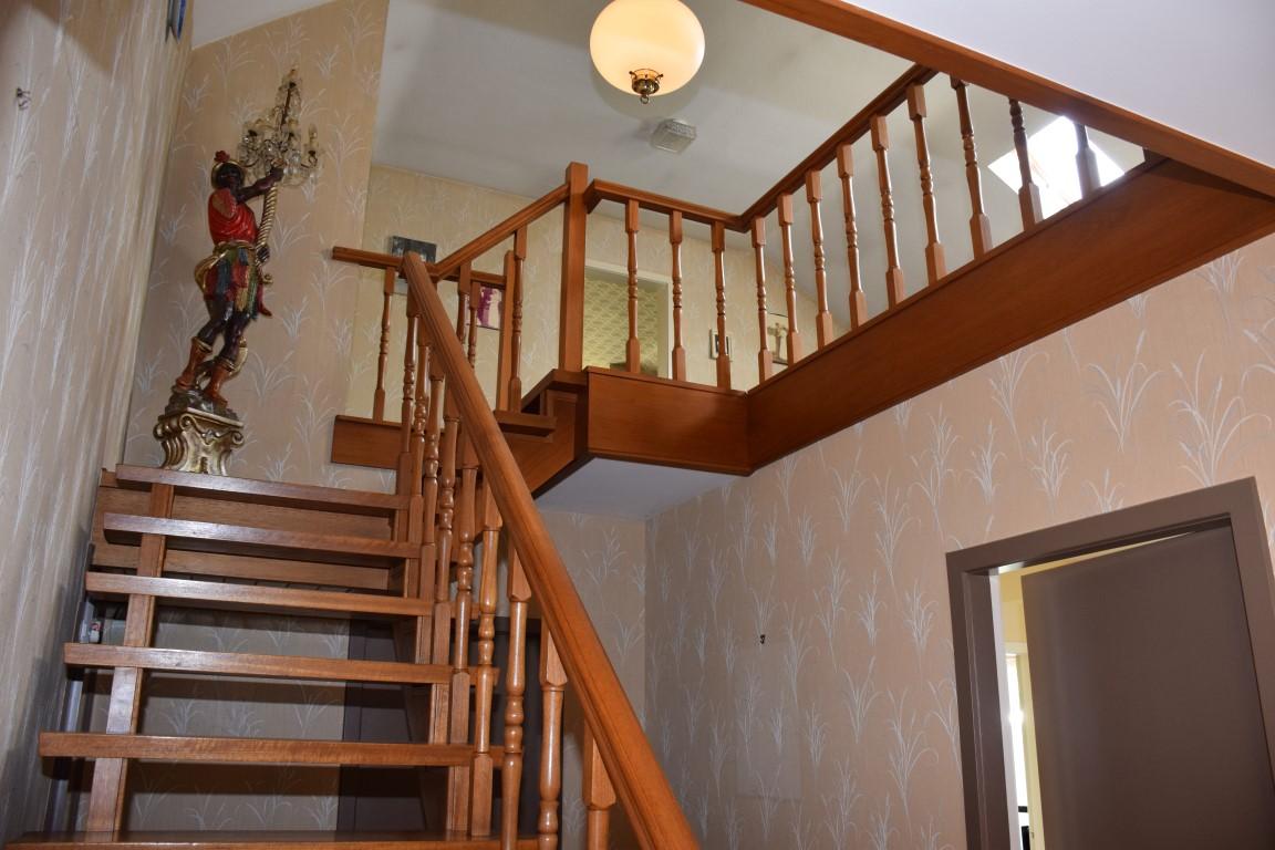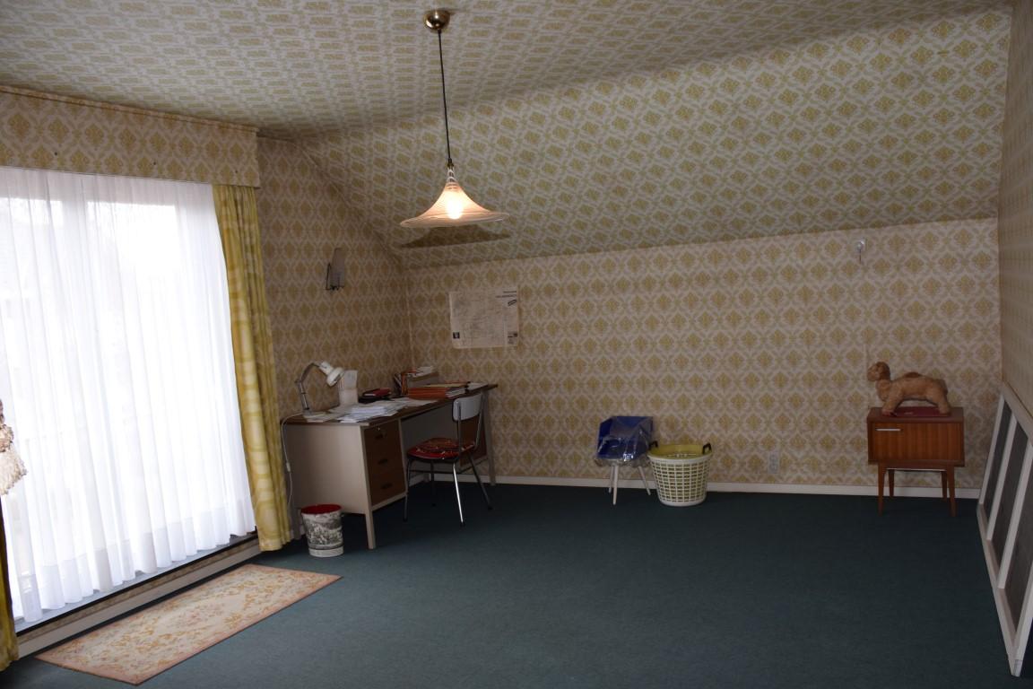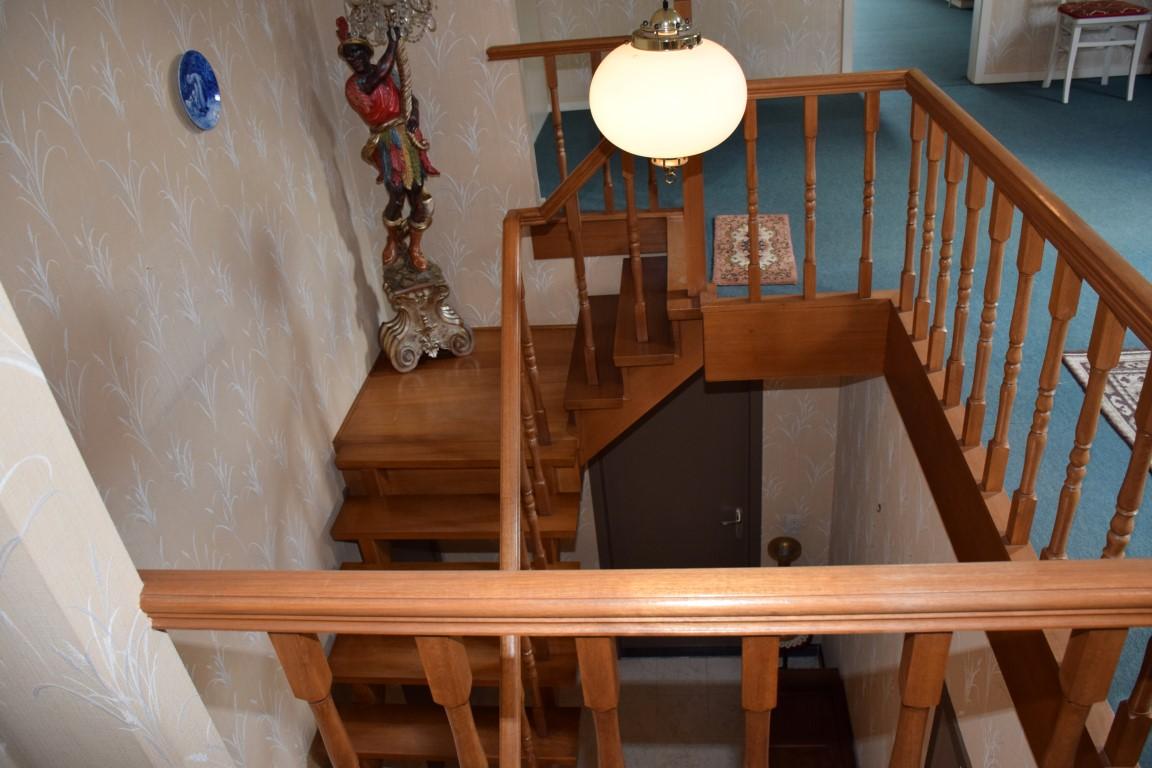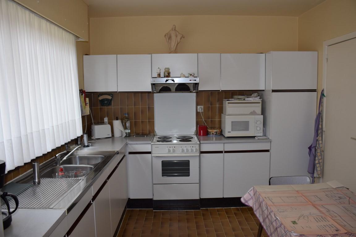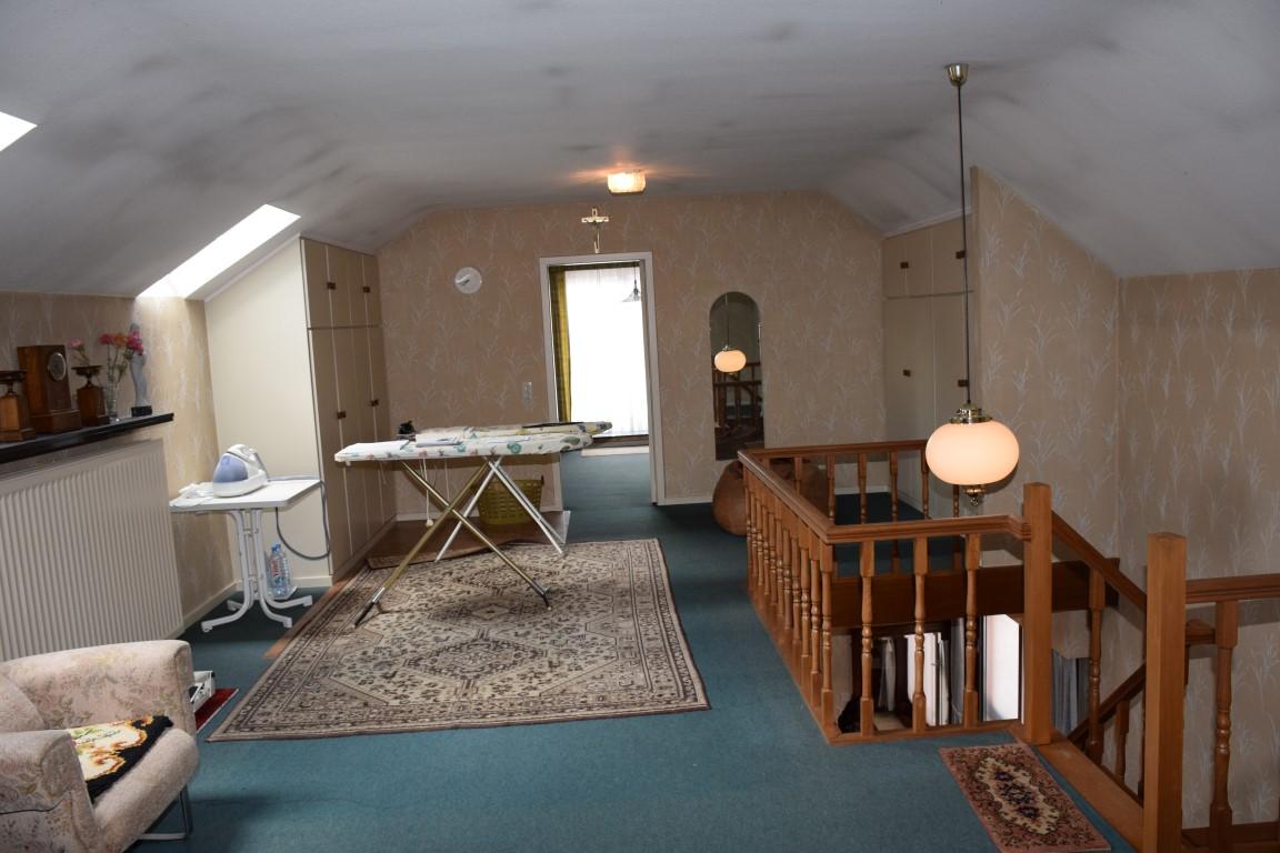 De eigendom omvat een voortuin en grote oprit voor de garage voor twee wagens, een ruime garage 19m² met achtergelegen grote bergruimte/chauffageplaats 13,80m².Verder beschikt de woning over een gang ruime /inkomhal met vestiairekast, stijlvolle trap , gastentoilet, lichtrijke living met zicht op grote tuin, afzonderlijk ingerichte keuken 11 m², 2 slaapkamers (2 x 12 m²) en een ingerichte badkamer (6 m²) bevinden zich op het gelijkvloers. Ramen zijn voorzien van rolluiken. De ruime bovenverdieping beschikt over 2 zeer ruime slaapkamers (25m² en 21m²) en biedt de mogelijkheid voor het bijmaken van twee slaapkamers of een kleine woongelegendheid. Alu-ramen grotendeels dubbele beglazing. De woning wordt verwarmd via centrale verwarming met stookolie.