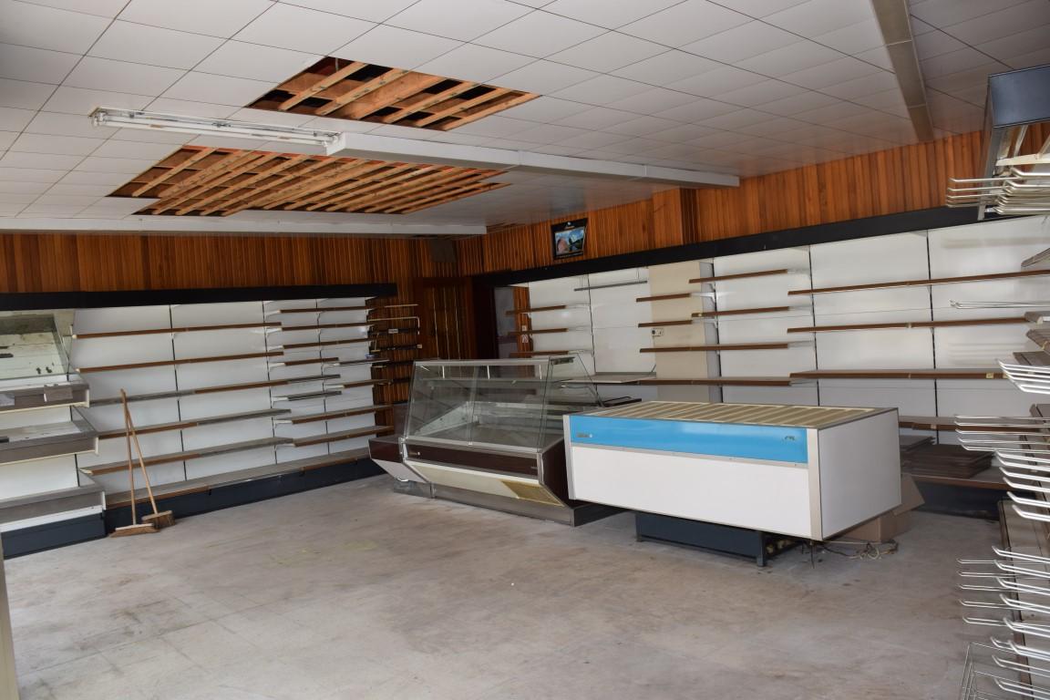 Het gelijkvloers omvat ruime handelsruimte 54 m² woonkamer 18 m² voorzien van trap naar de bovenverdieping, eetkamer/keuken 14,4 m².