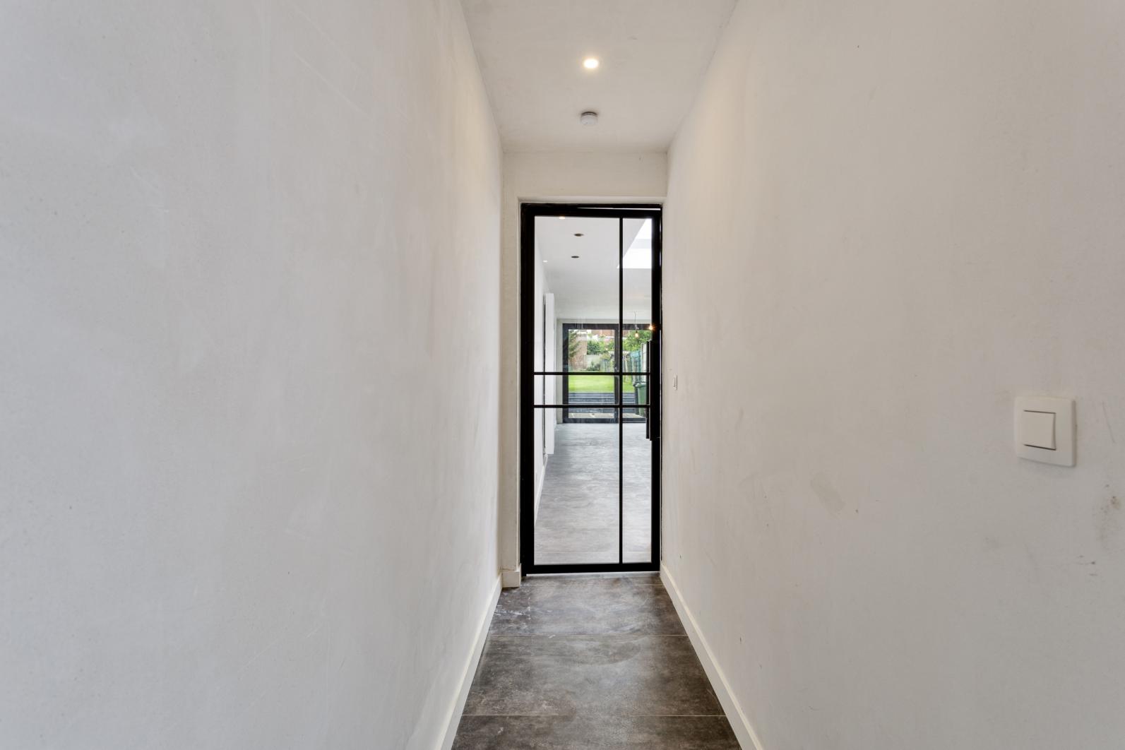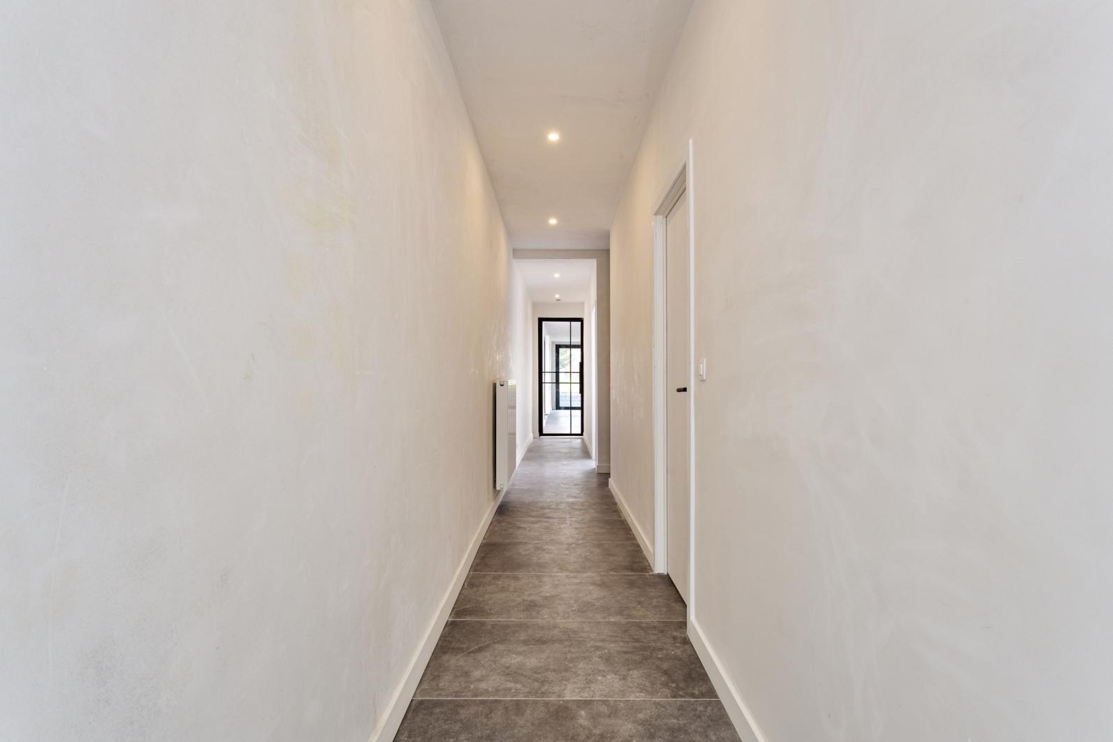 gang - bureel - toilet - slaapkamer gelijkvloers - lichtrijke living met open ingerichte keuken - terras en zuiders gerichte grote tuin. De bovenverdieping omvat nachthal - ingerichte badkamer - 2 slaapkamers.