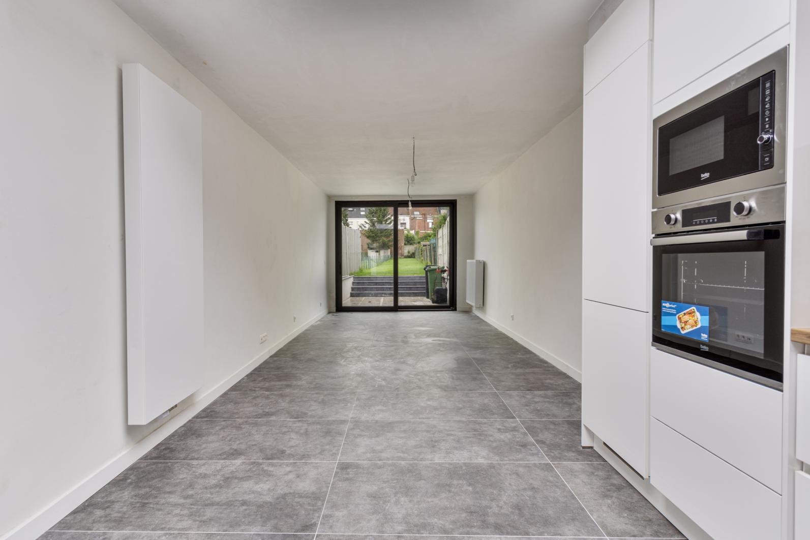 In het centrum, nabij scholen, openbaar vervoer, stadspark, .....zeer goed gelegen TOTAAL VERNIEUWDE WONING met grote tuin en 3 slpks.